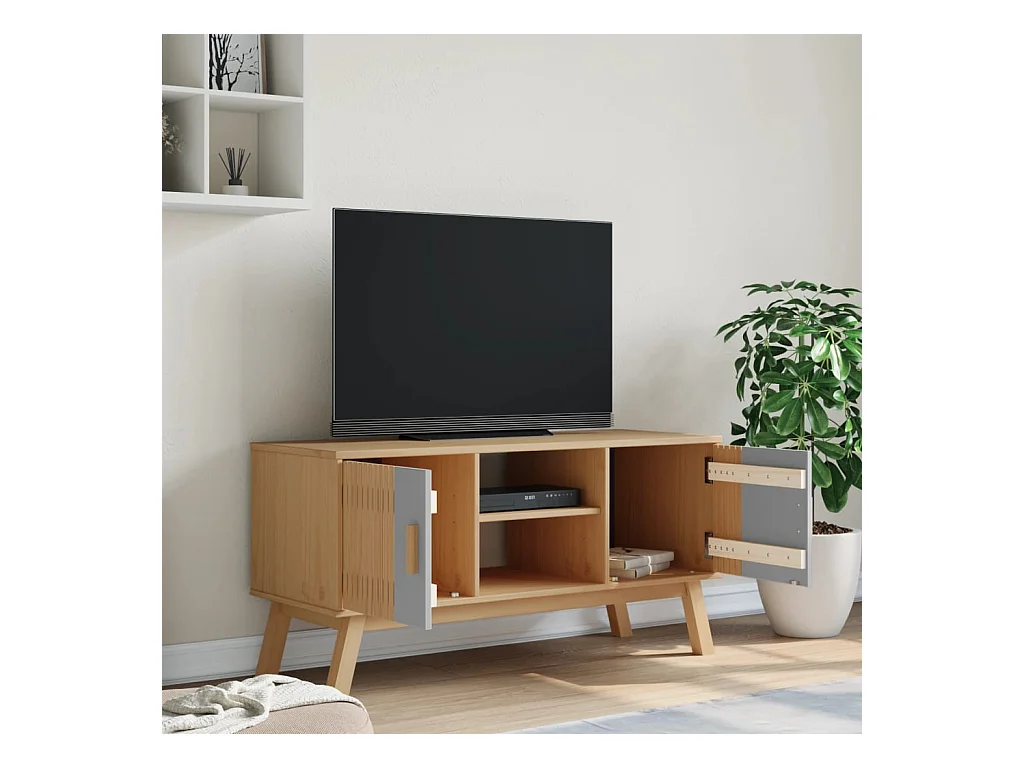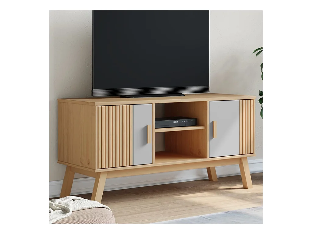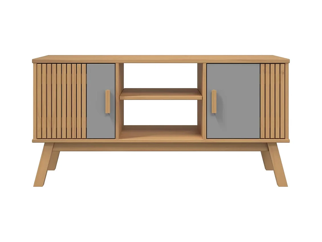 Mykarl Meuble TV OLDEN gris et marron 114x43x57 cm bois de pin massif