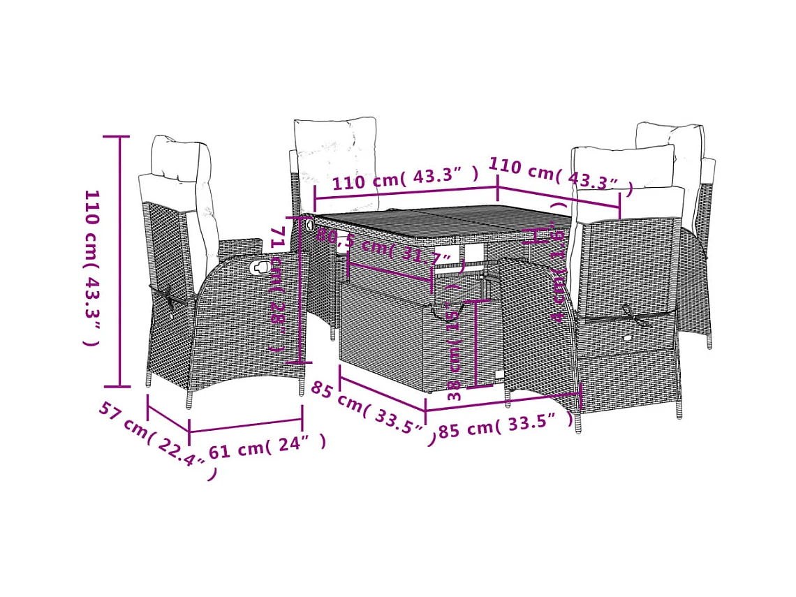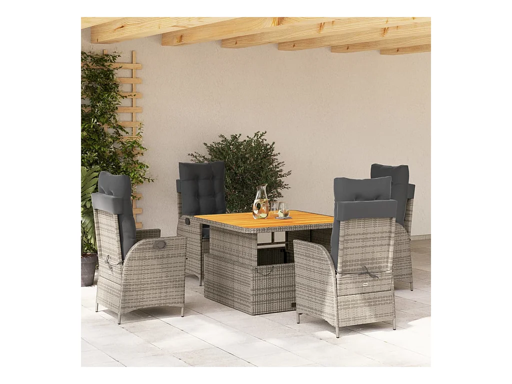 Myrvin Ensemble à manger de jardin 5 pcs coussins gris résine tressée