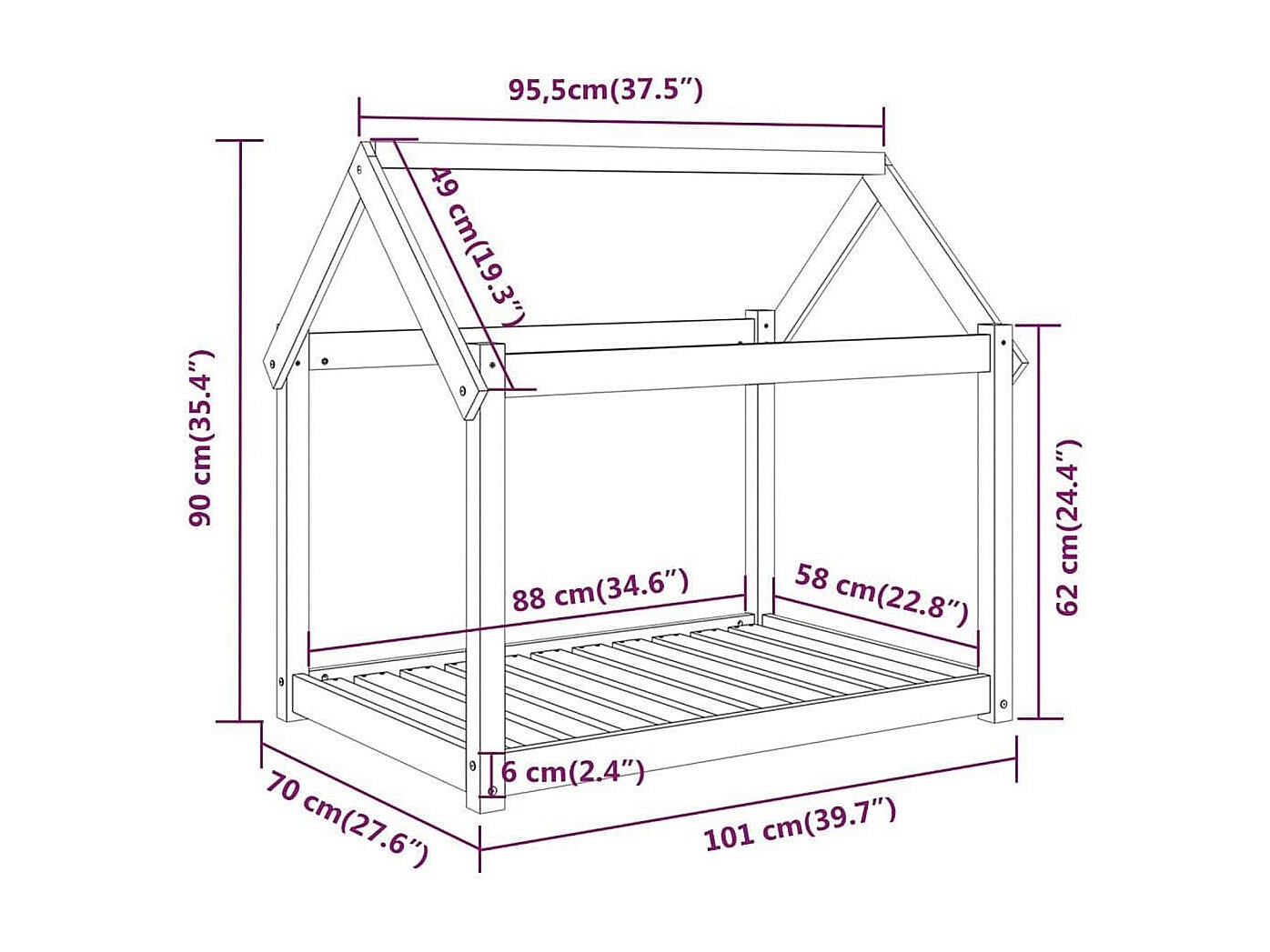 Naomi Lit pour cen Noir 101x70x90 cm Bois de pin solide