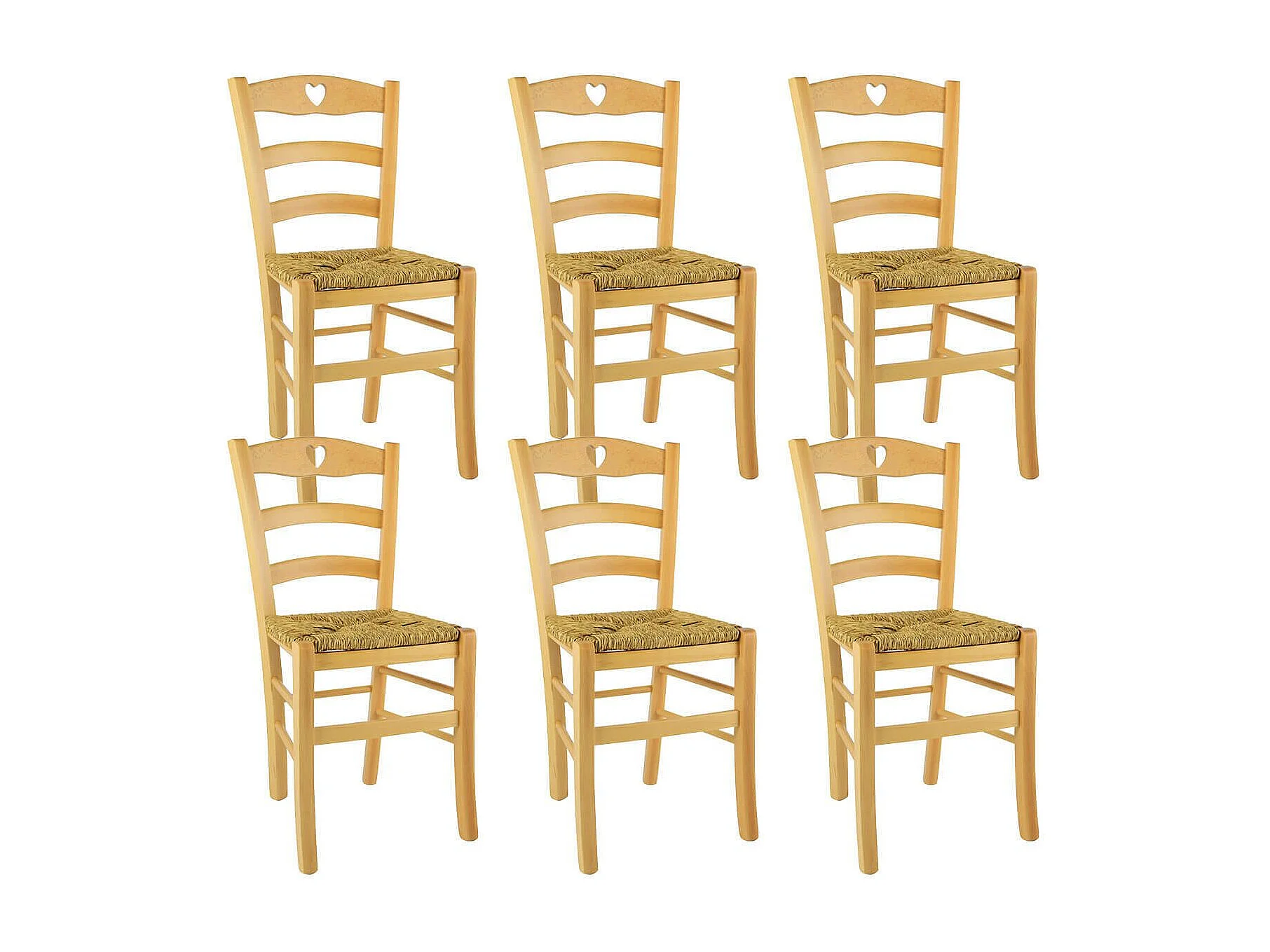 NAPLES - Lot de 6 Chaises Naturelles et Assises en Paille