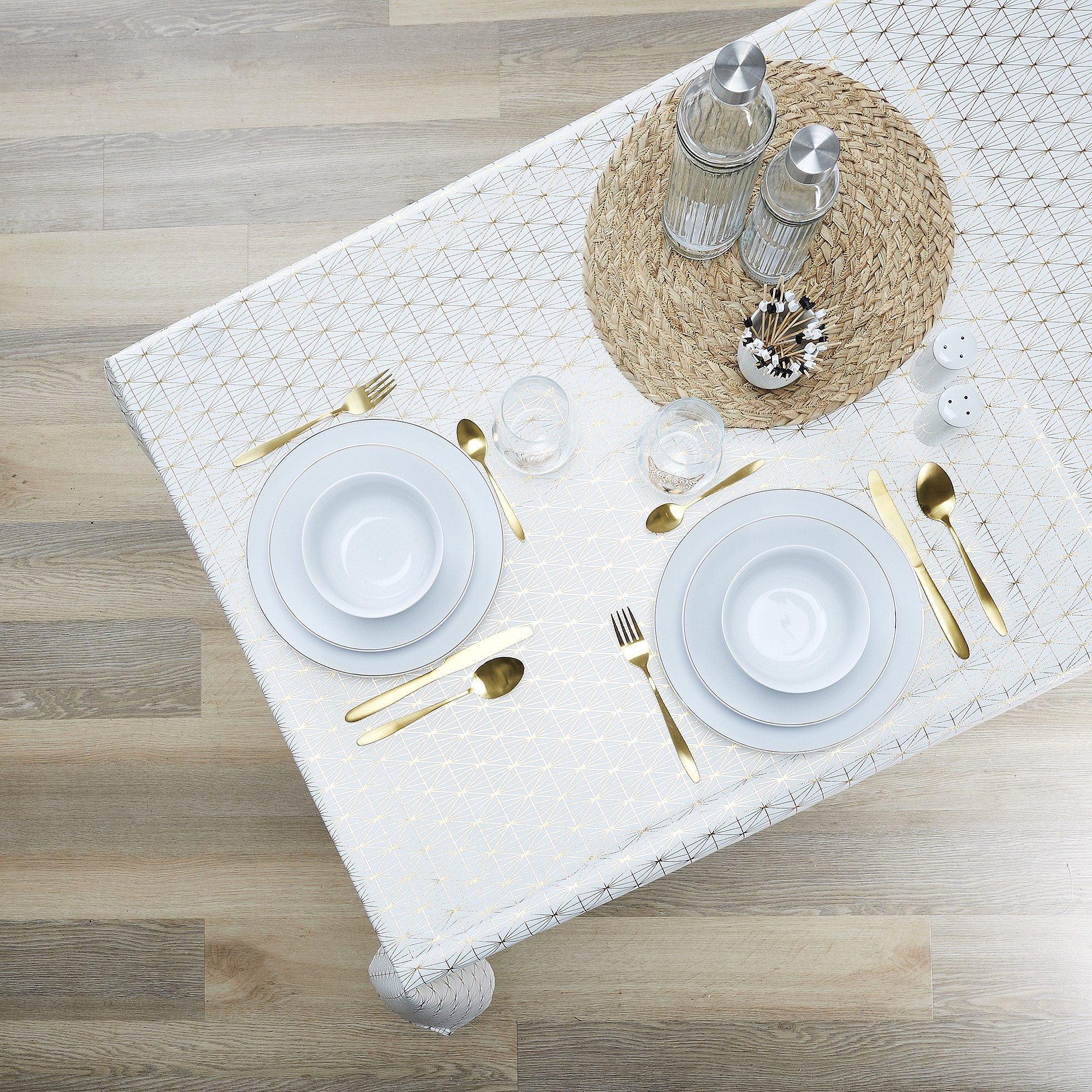 Nappe Motif Geometrique Dore 140x250cm Blanc, Or