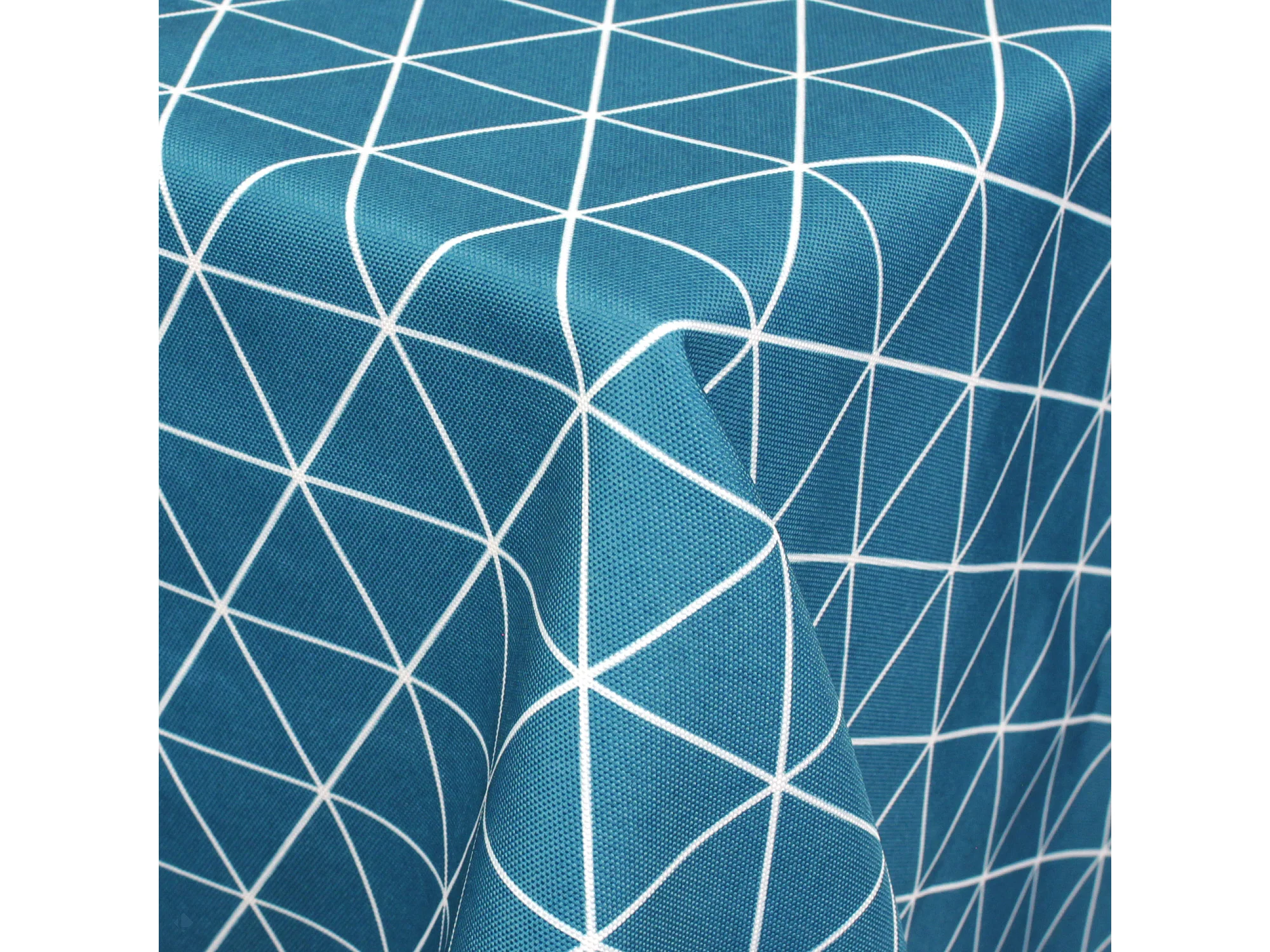 Nappe ronde 180 cm imprimée 100% polyester PACO géométrique bleu curacao