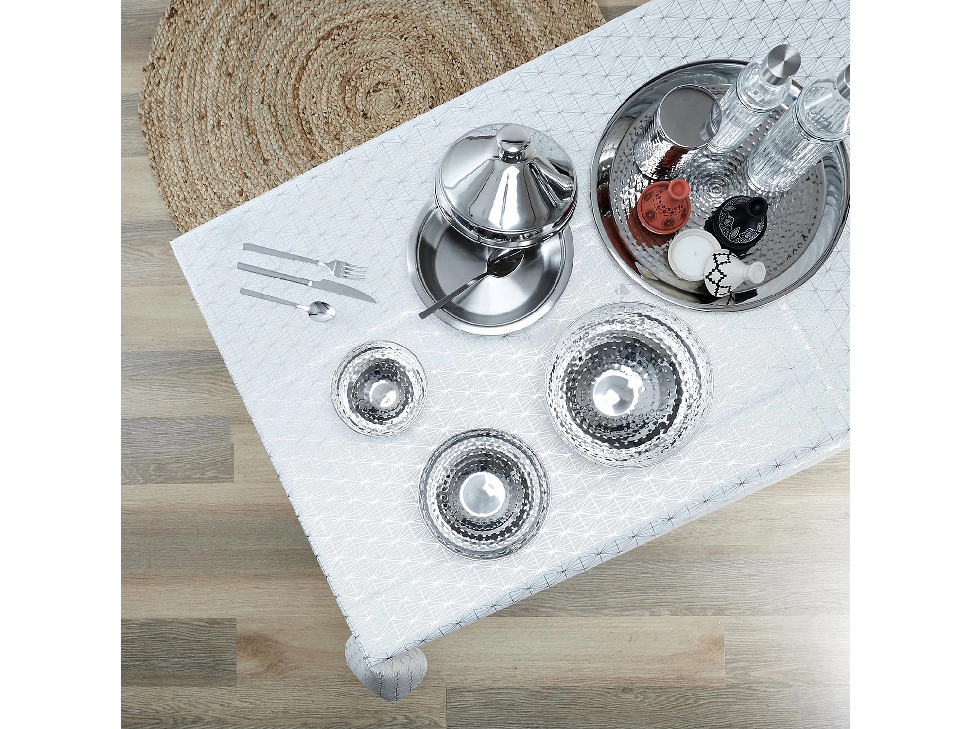 Nappe rectangle 140x250 cm GOLD motifs géométriques blanche argentée