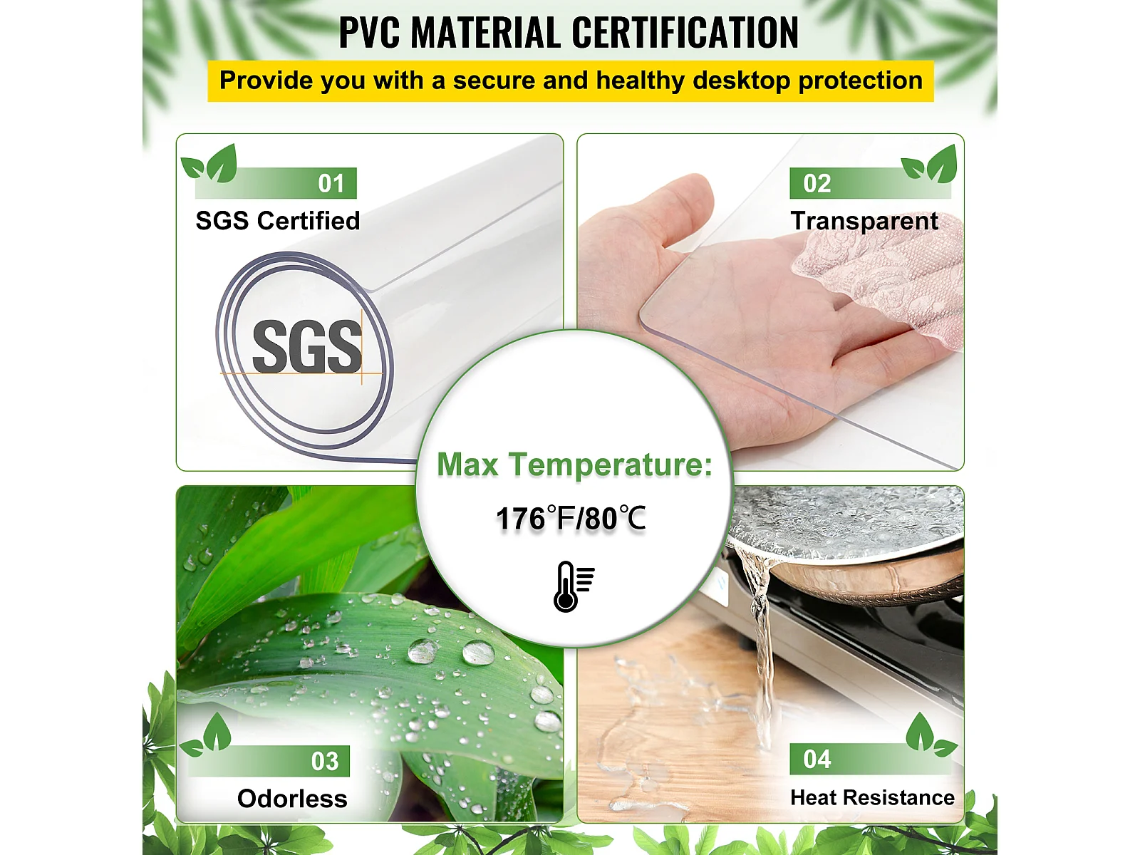 Nappe Transparente SucceBuy Protection de Table en PVC, 91 x 137 cm, Sous-Main en Plastique Transparent, 1,5 mm d’Épaisseur