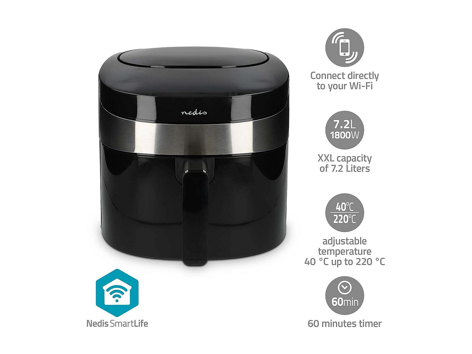 Nedis Friteuse à air chaud smart life - wi-fi - noir - kaaf180bkw
