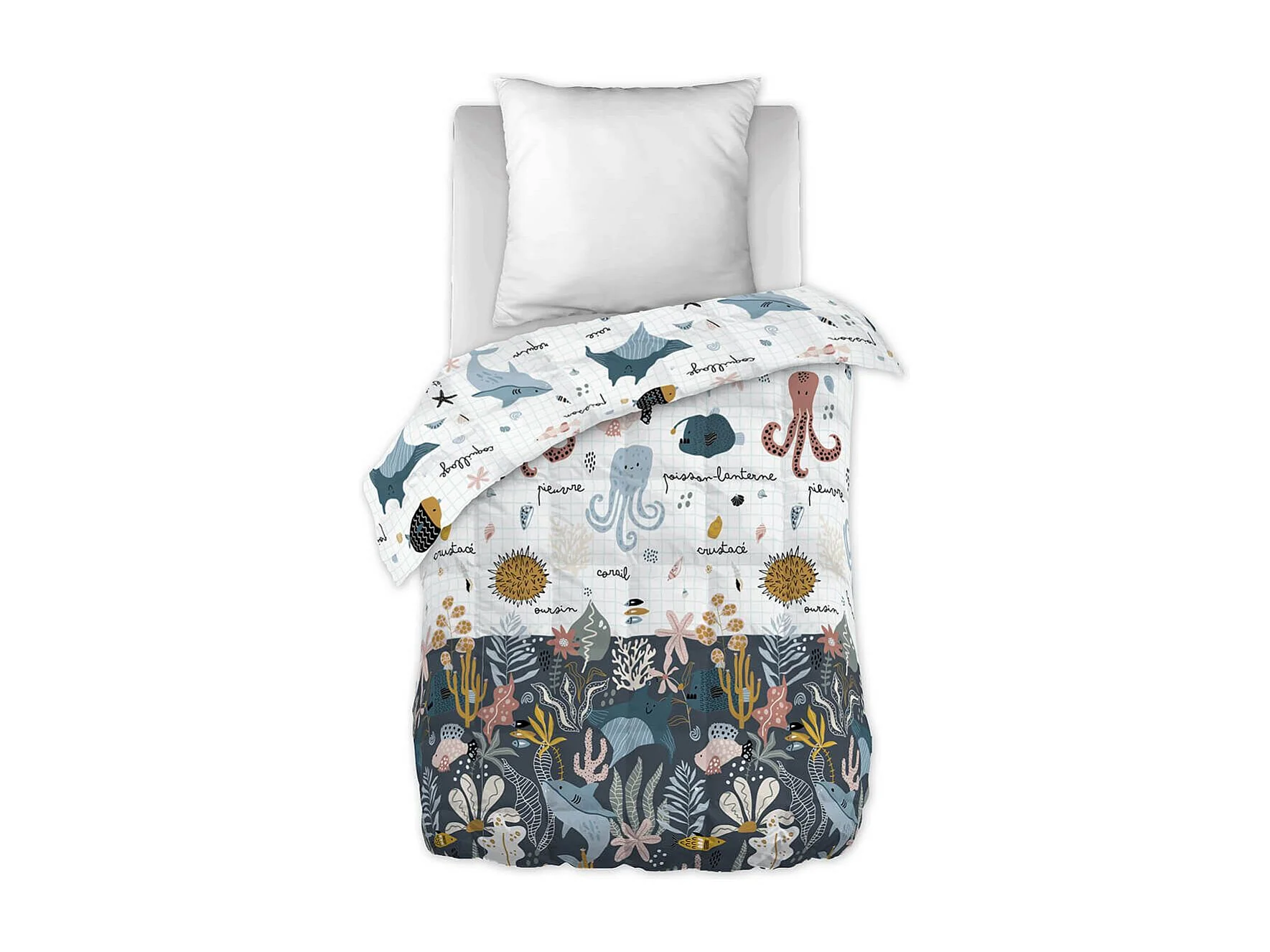 NEMO - Couette Imprimée Motifs Océan 140x200 cm + 1 Taie d'oreiller 60x60 cm
