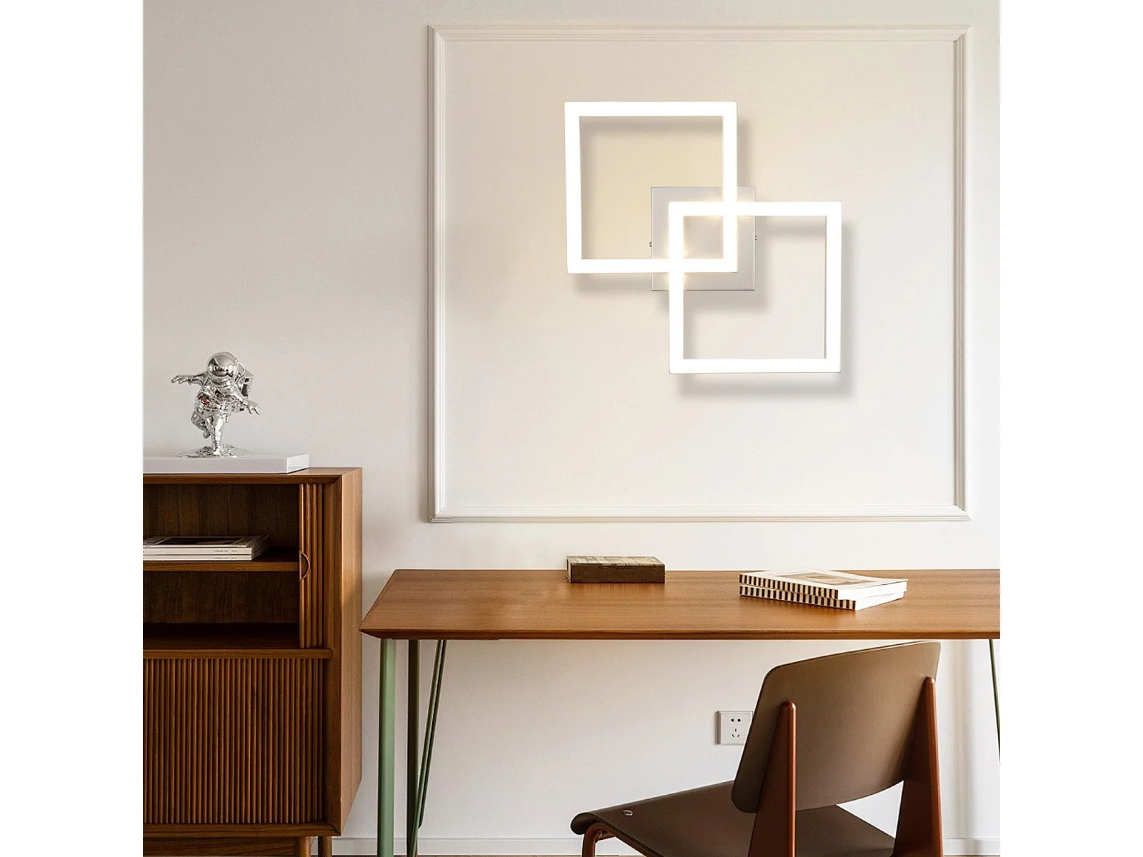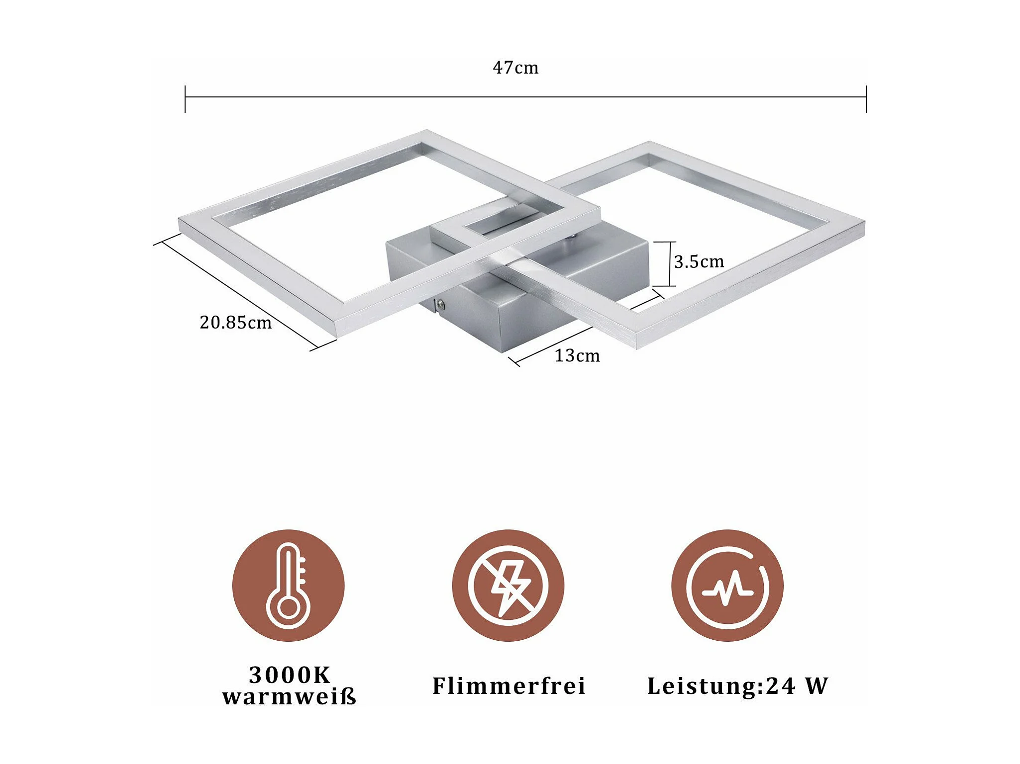 NETTLIFE Plafonnier LED carré argenté moderne pour chambre à coucher 24 W en métal 3000 K blanc chaud pour couloir