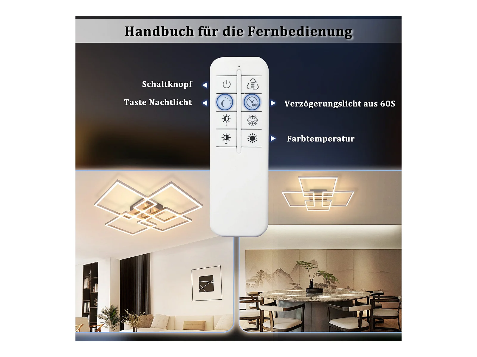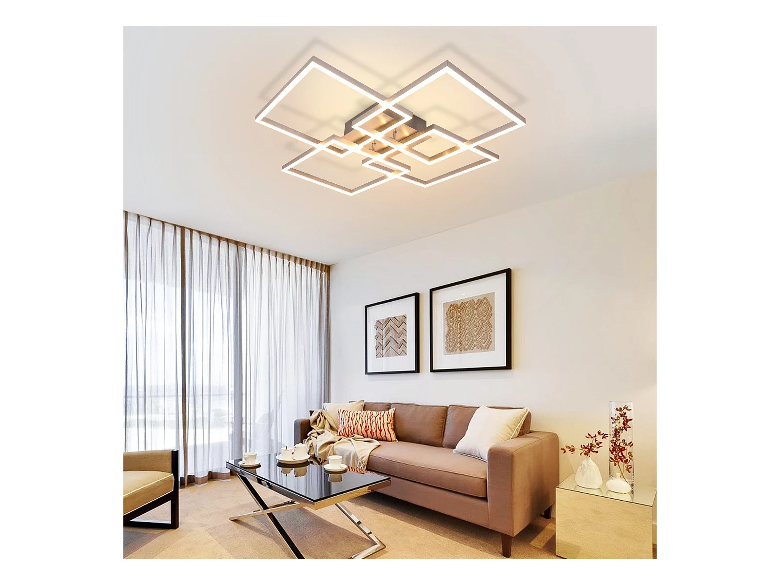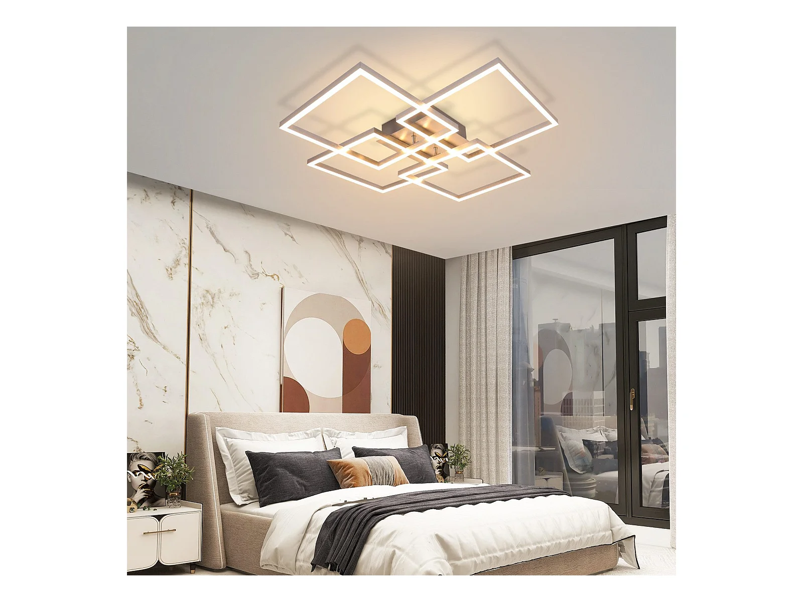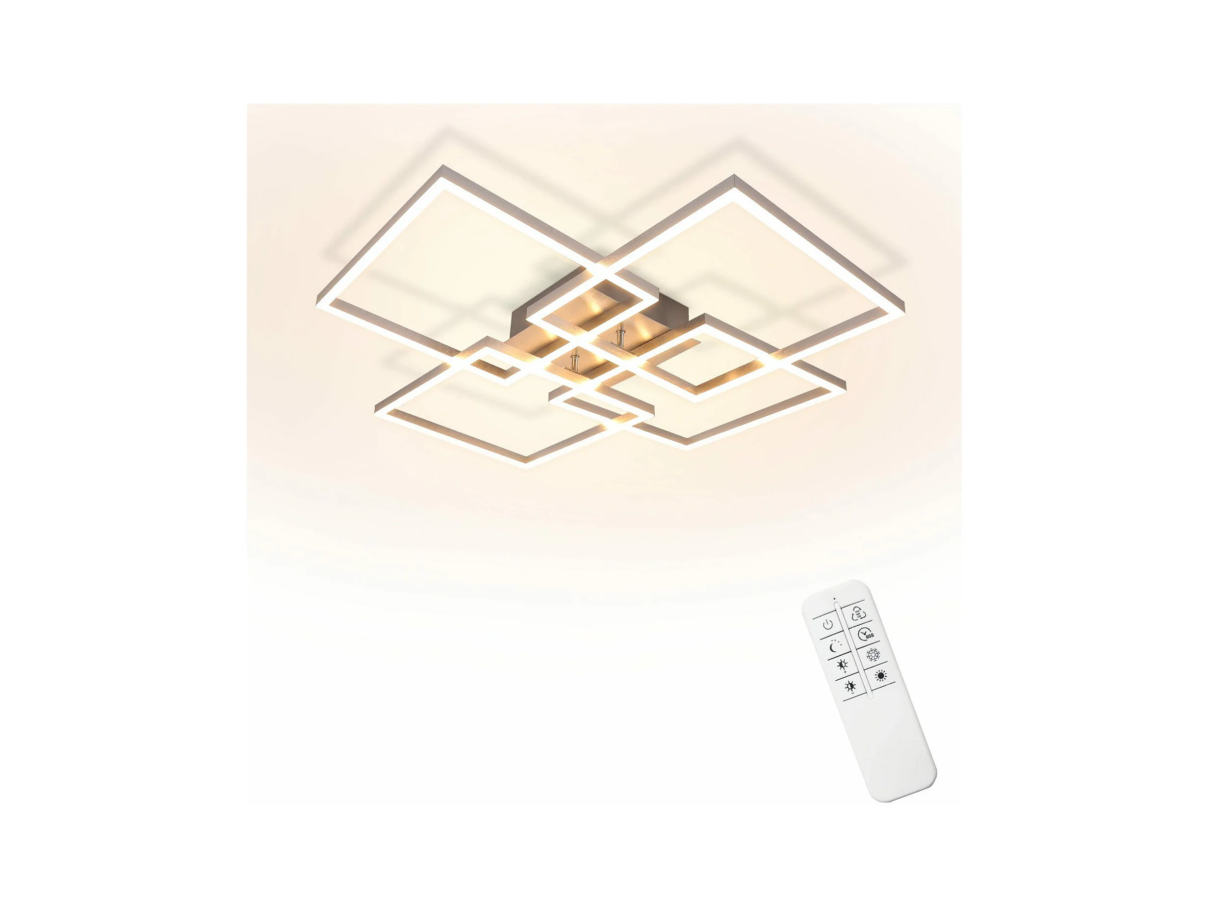 NETTLIFE Plafonnier LED Chambre Argent Dimmable 64CM 36W Géométrique Salon avec Télécommande