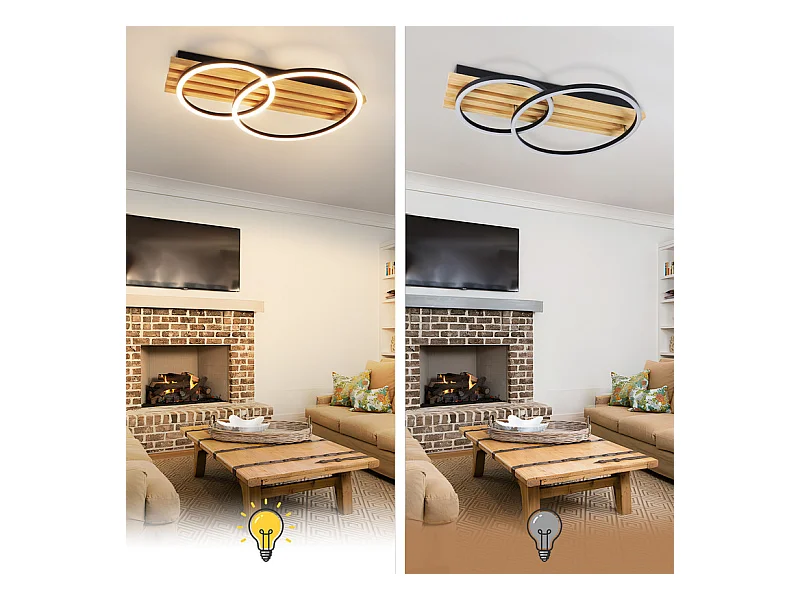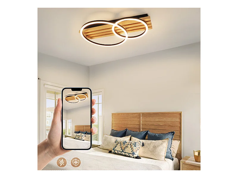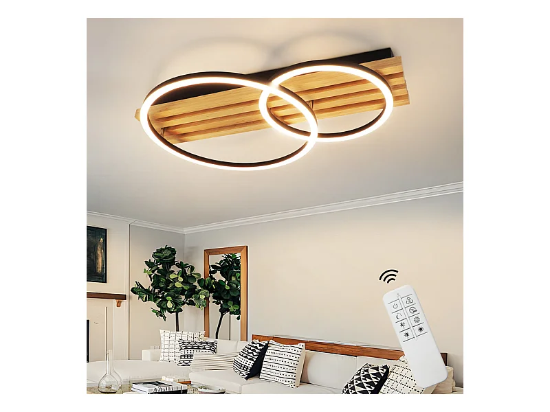 NETTLIFE Plafonnier led en intensité variable : 55 cm, plafonnier moderne à 2 anneaux, 36 w, design avec télécommande, pour chambre à coucher,
