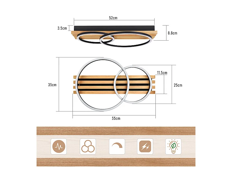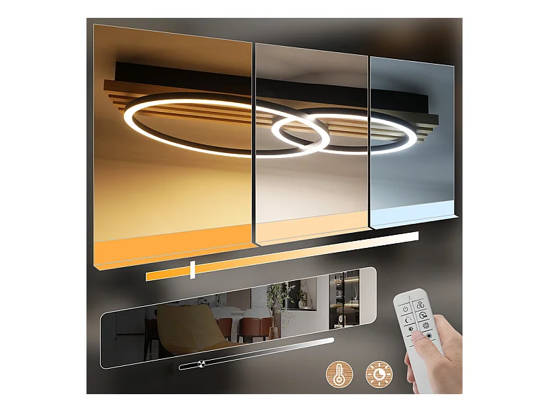 NETTLIFE Plafonnier led nettlife, plafonnier de salon, design moderne avec anneaux lumière blanche chaude 3000k lampe de chambre à coucher 29w 62,5 cm