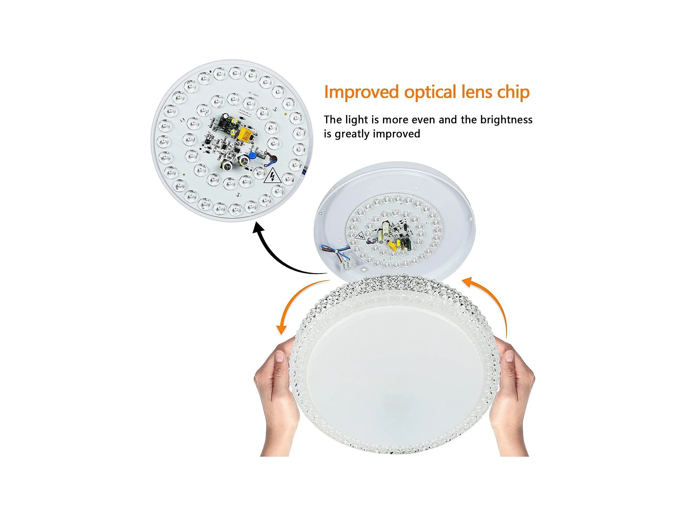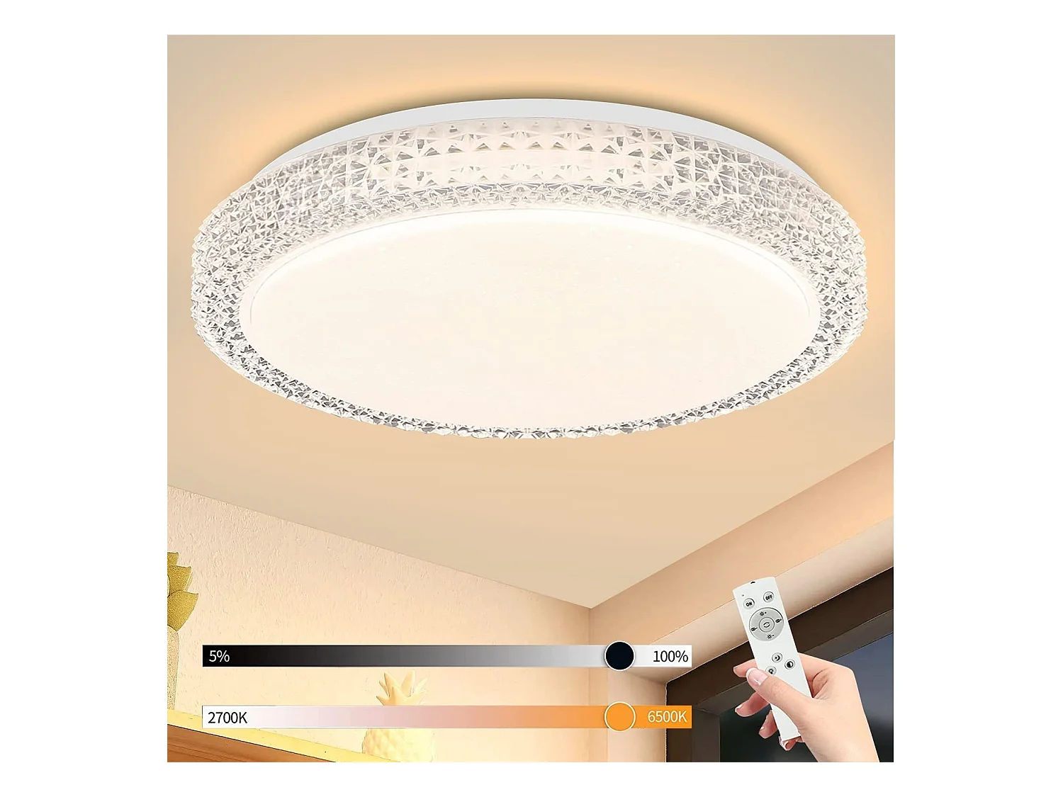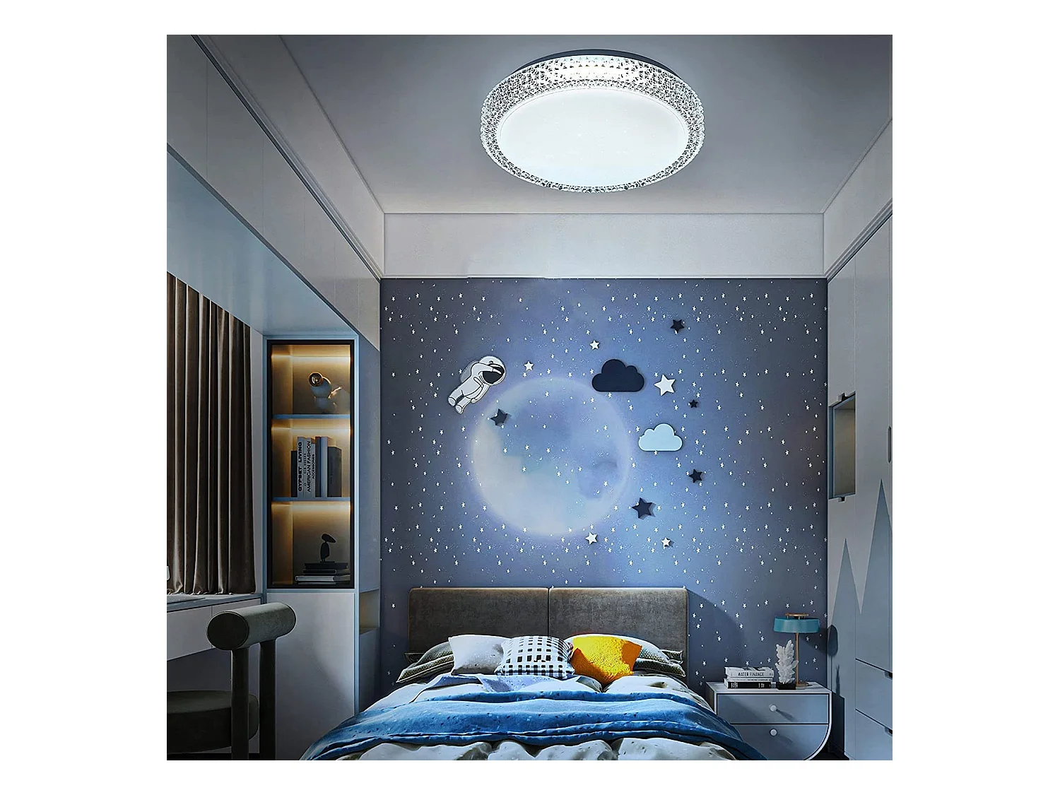 NETTLIFE Plafonnier LEDavec télécommande à intensité variable 18W, diamètre 30cm, ciel étoilé en cristal moderne, adapté pour chambre à coucher, salon