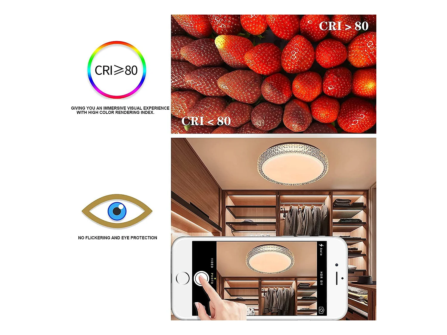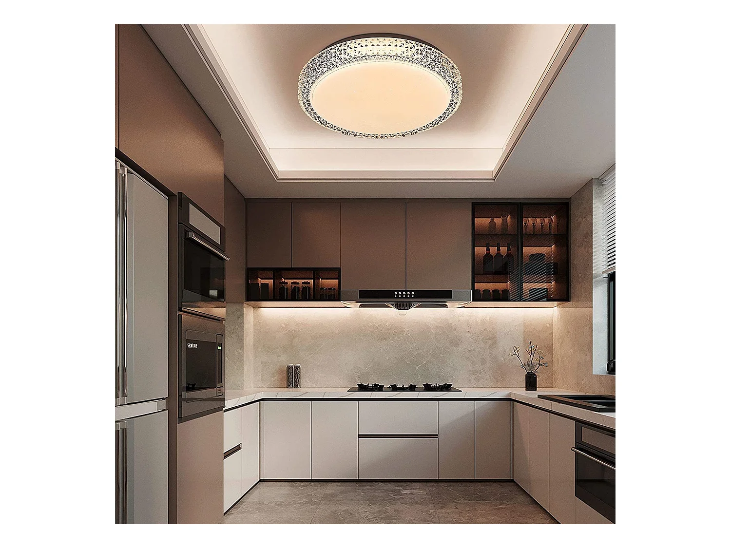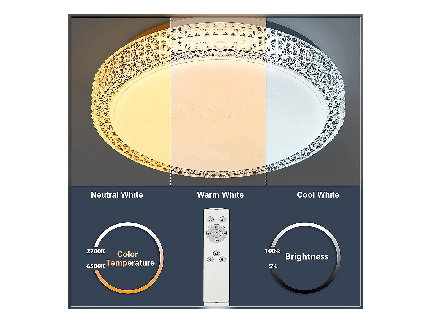 NETTLIFE Plafonnier LEDavec télécommande à intensité variable 18W, diamètre 30cm, ciel étoilé en cristal moderne, adapté pour chambre à coucher, salon