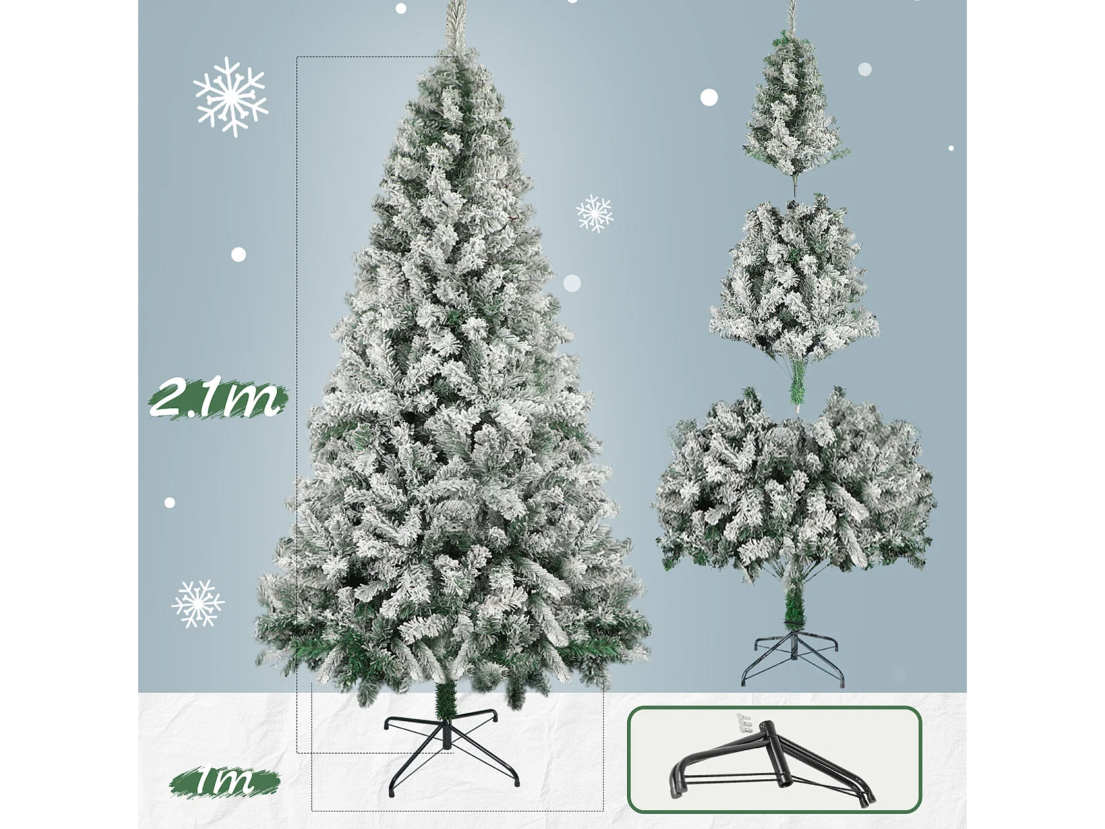 Sapin de Noël artificiel aspect enneigé Ø 100 x 210H cm 968 branches épines imitation Nordmann grand réalisme