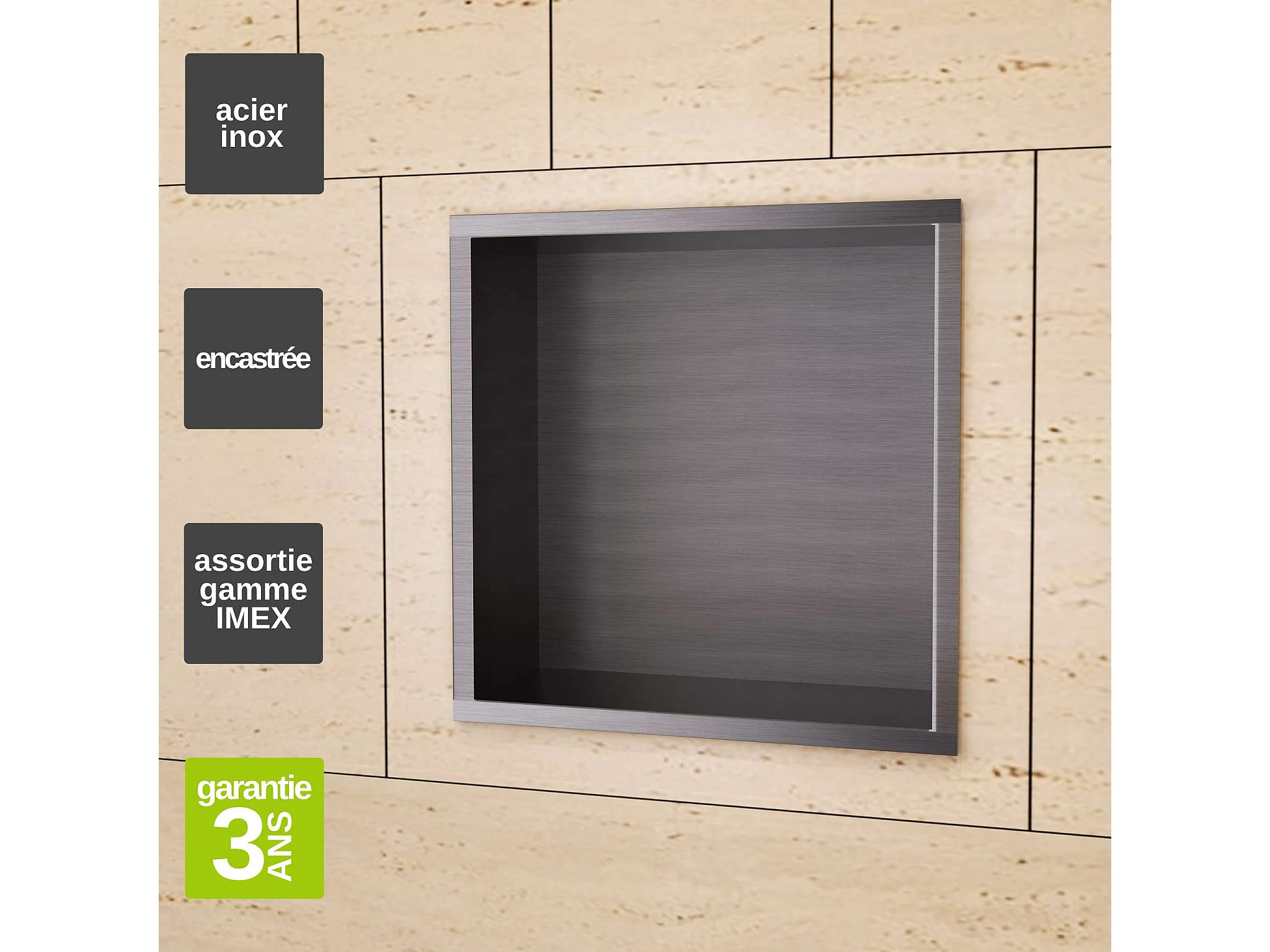Niche de Douche Mural 33 x 33 cm - Rangement Salle de Bain en finition Noir Métal - ATLANTIC
