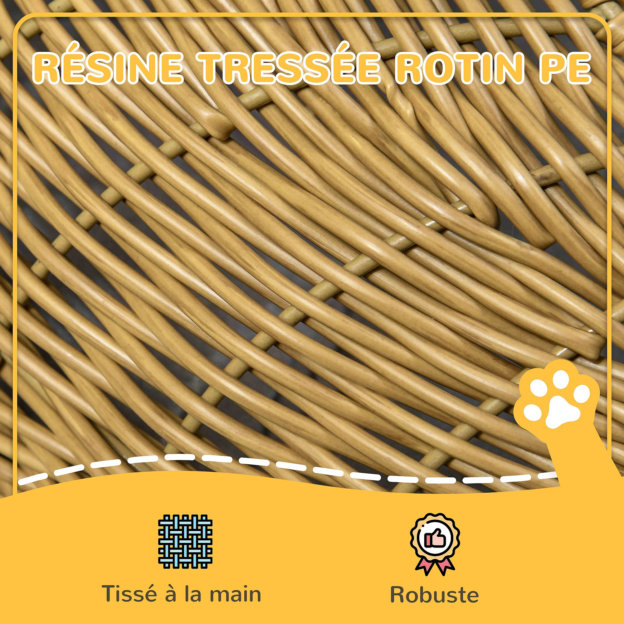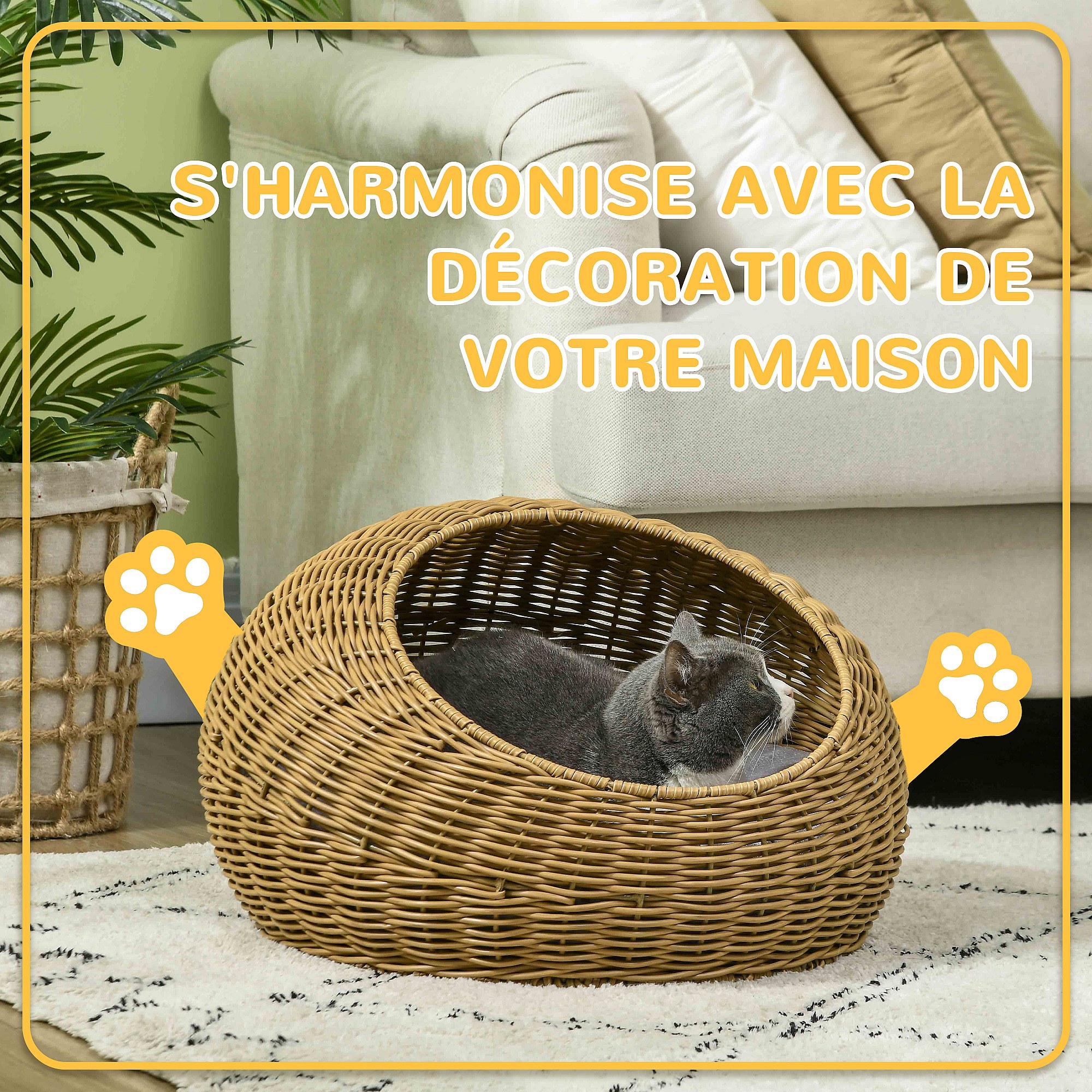 Niche pour chat lit pour chat panier de chat en résine tressée imitation rotin coussin doux déhoussable Ø 50 x 31H cm marron clair