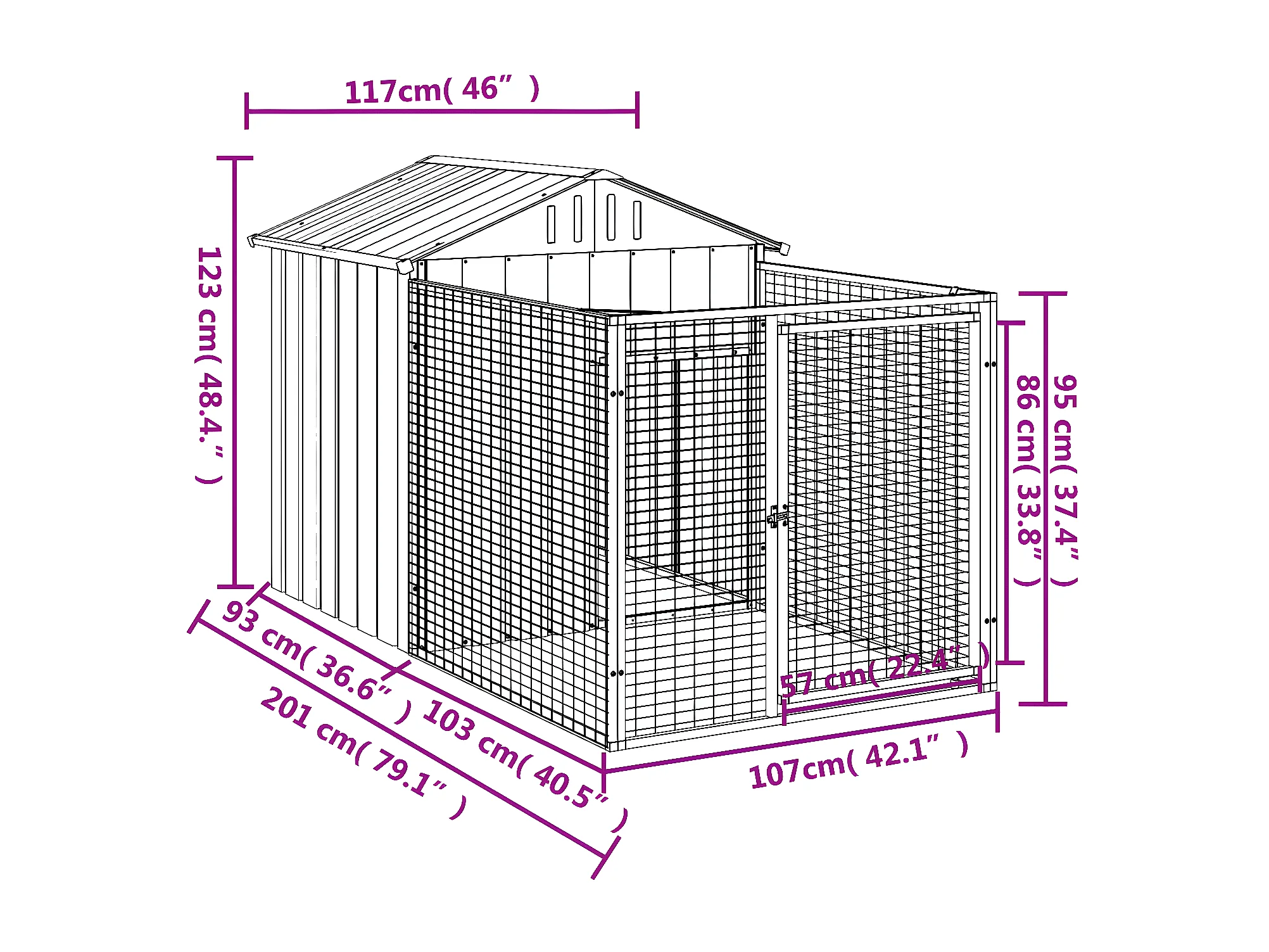 Niche pour chien avec cour gris clair 117x201x123 cm RG3Q21429