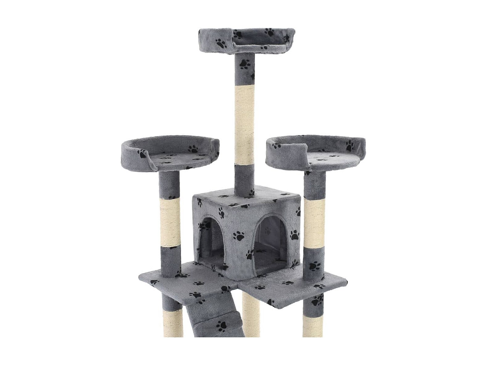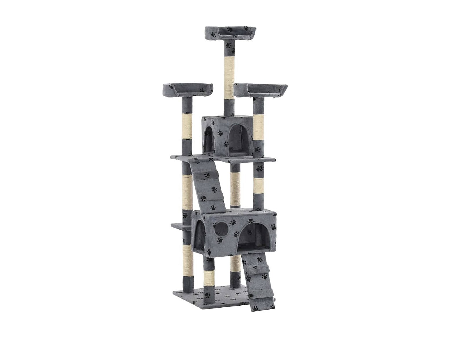 Nidrik Arbre à chat et griffoirs Sisal 170cm Empreintes de pattes Gris