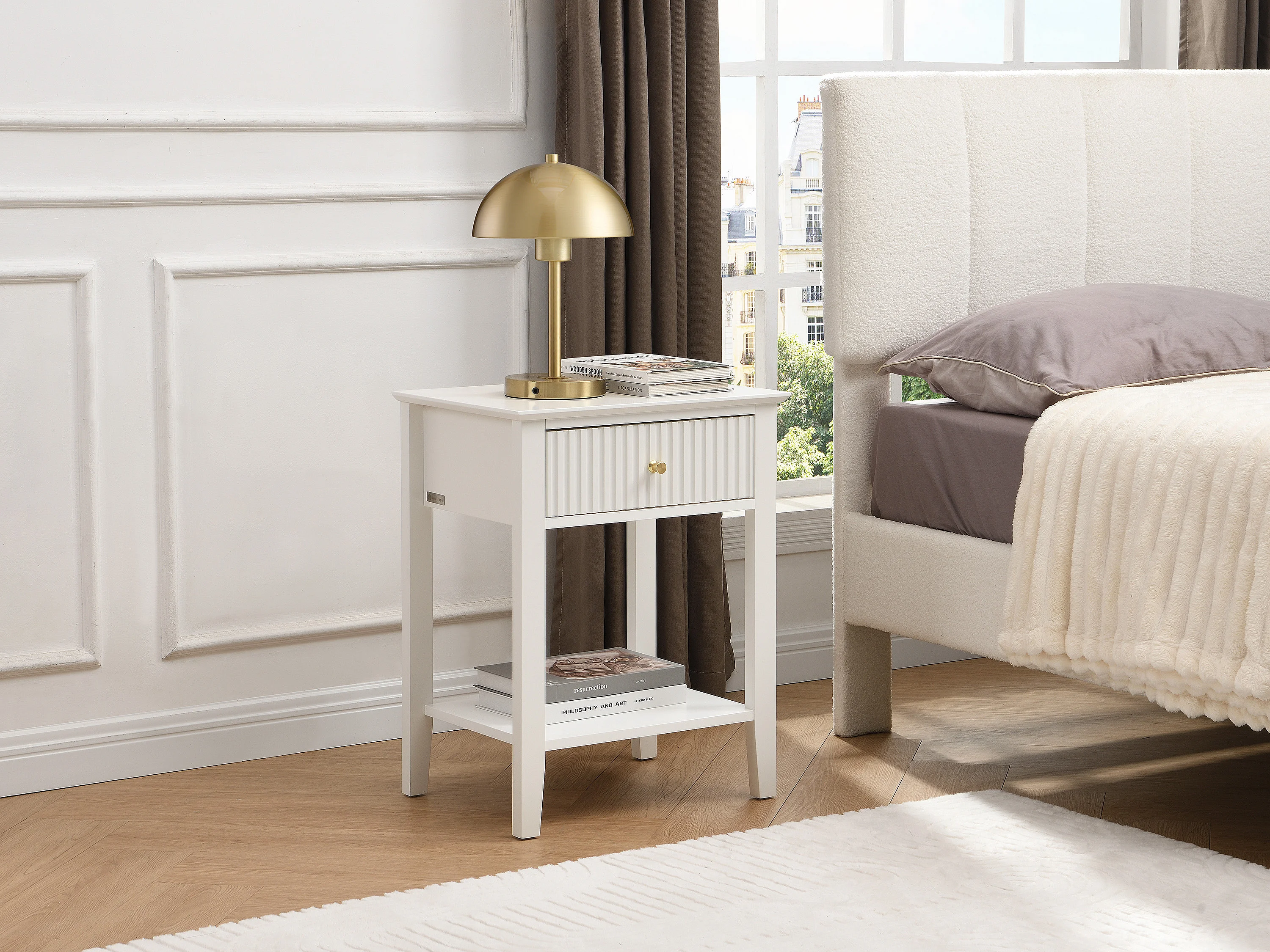 Table de chevet 1 tiroir et 1 tablette - MDF - Blanc - NIRIVA