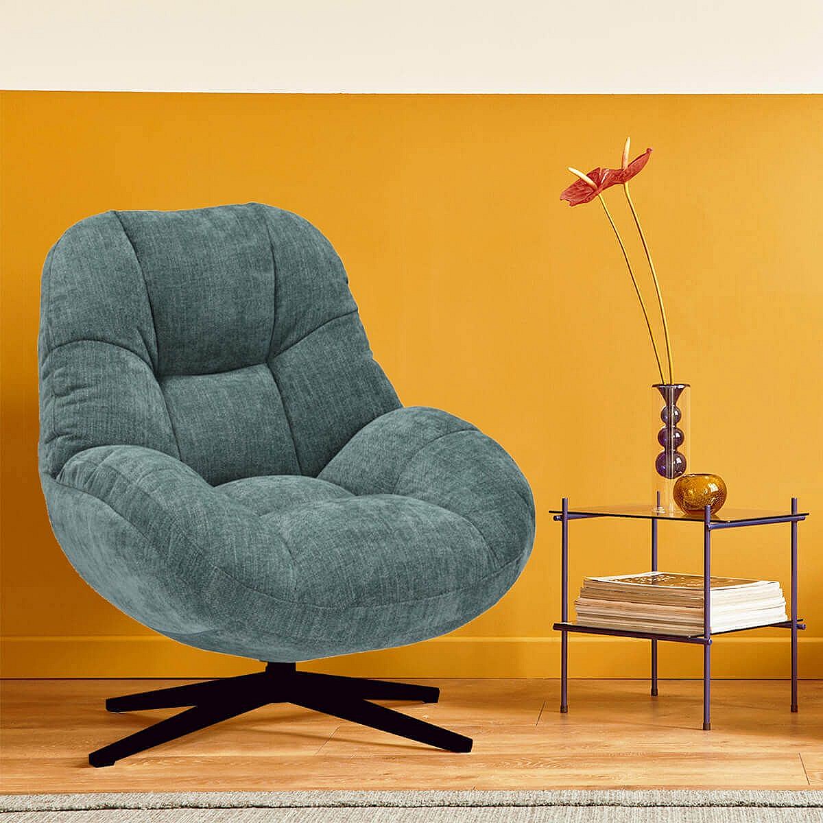 NOAM - Fauteuil Pivotant En Tissu Polyester Vert bleuté