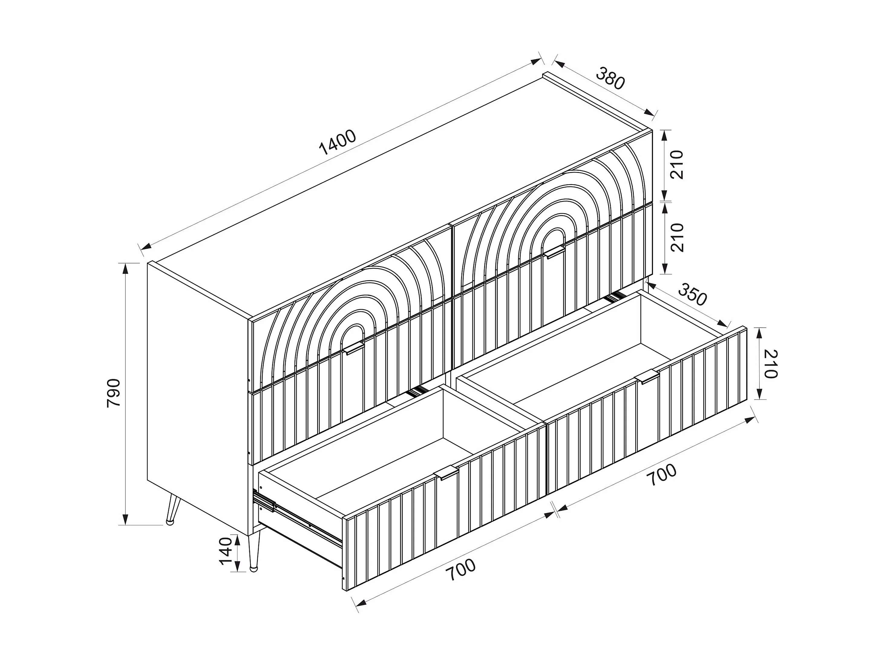 Commode moderne effet chêne 4 tiroirs blancs BYRON