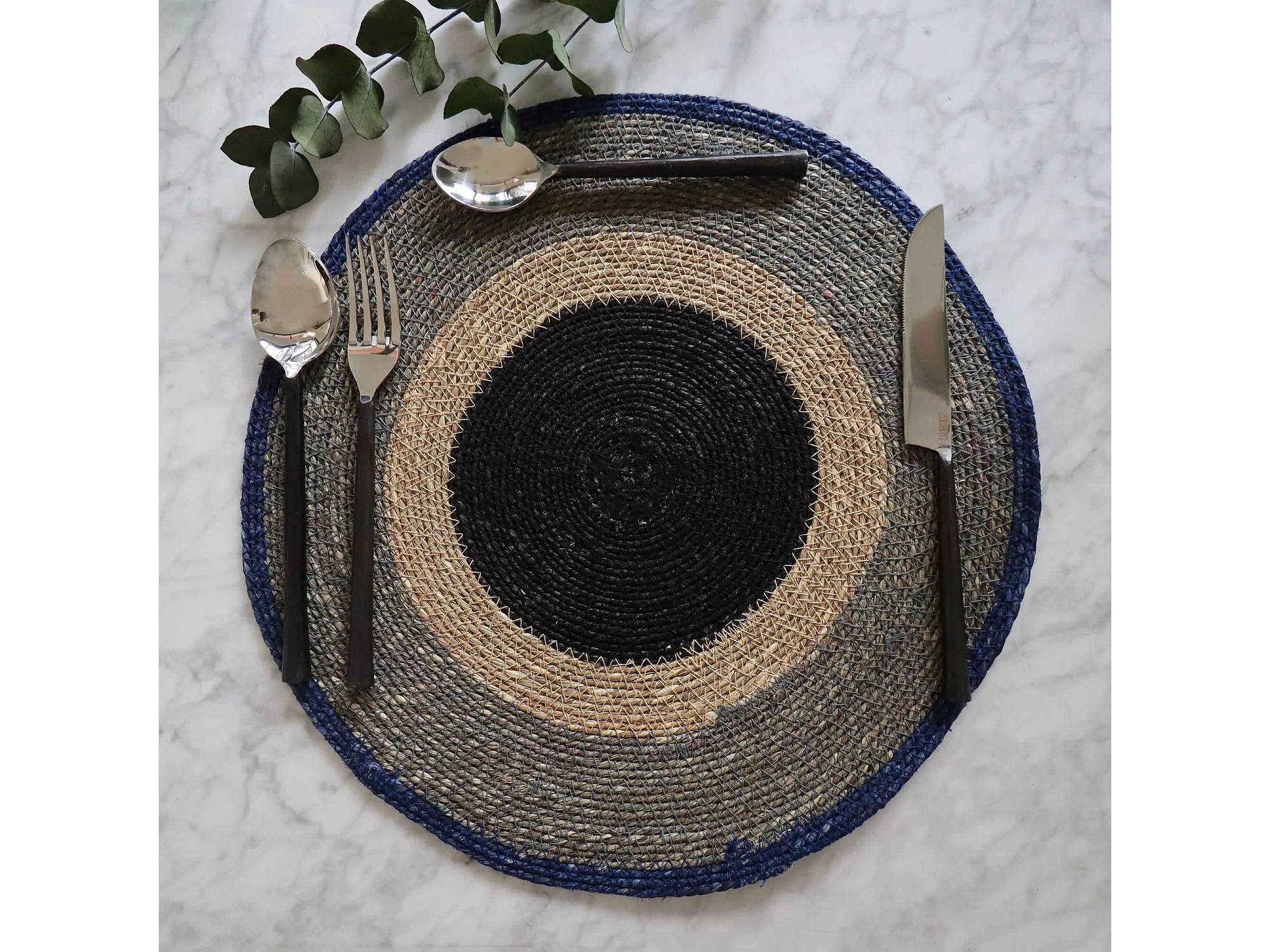 Novastyl - Lot 6 Sets De Table Luna Rond 38cm En Jonc De Mer Naturel Et Bleu
