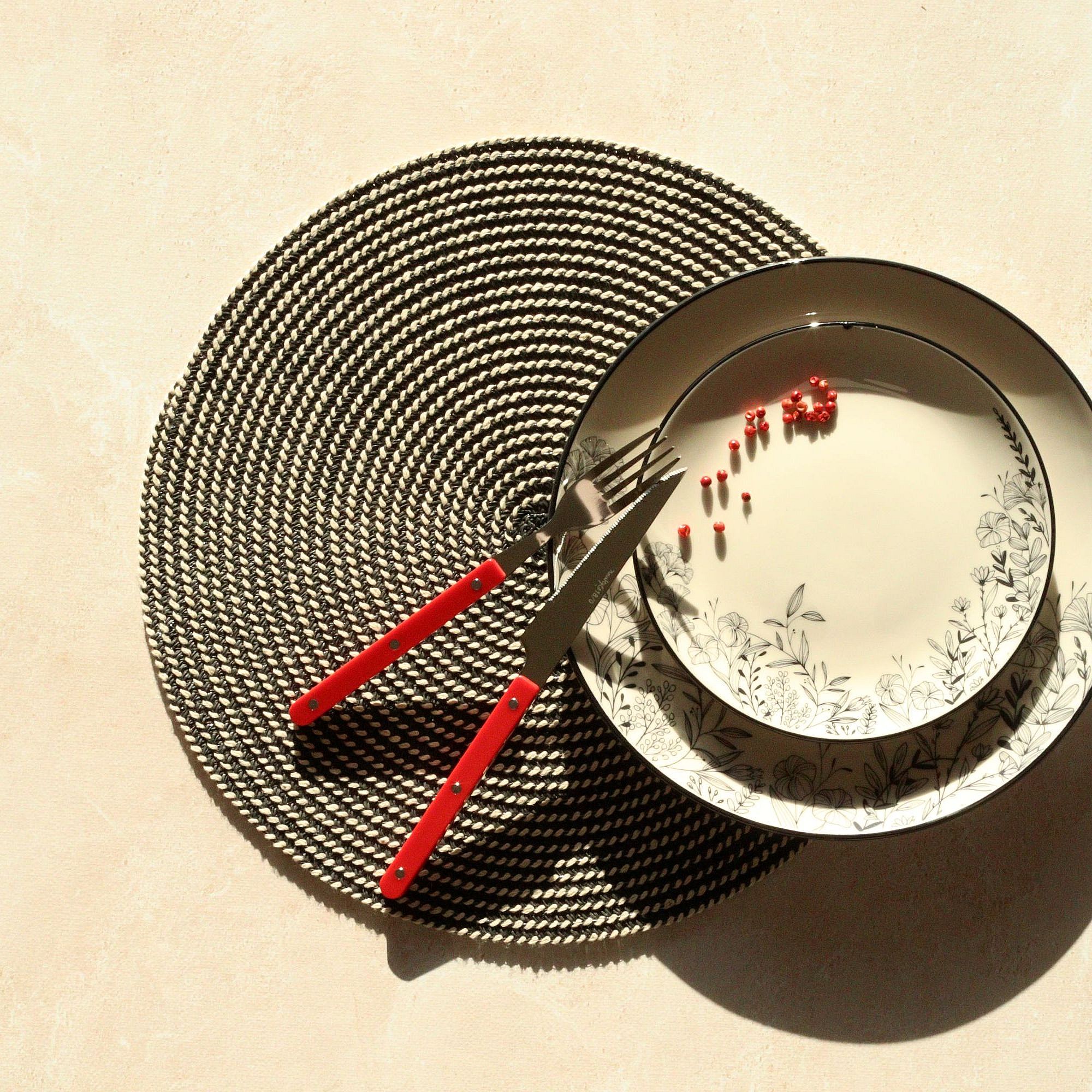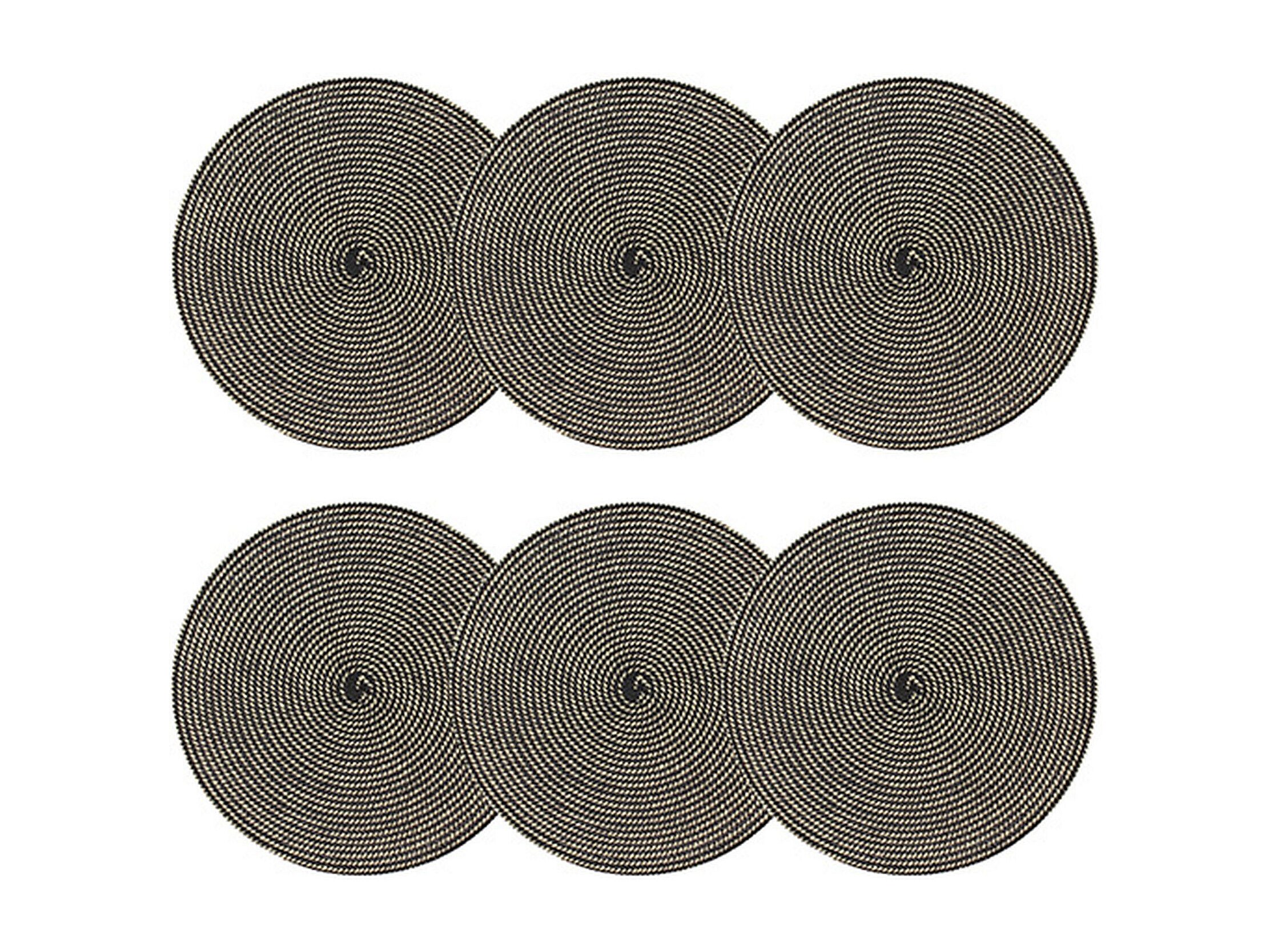 Novastyl - Lot 6 Sets De Table Tisse Rond 36cm En Papier Et Coton Naturel Et Noir
