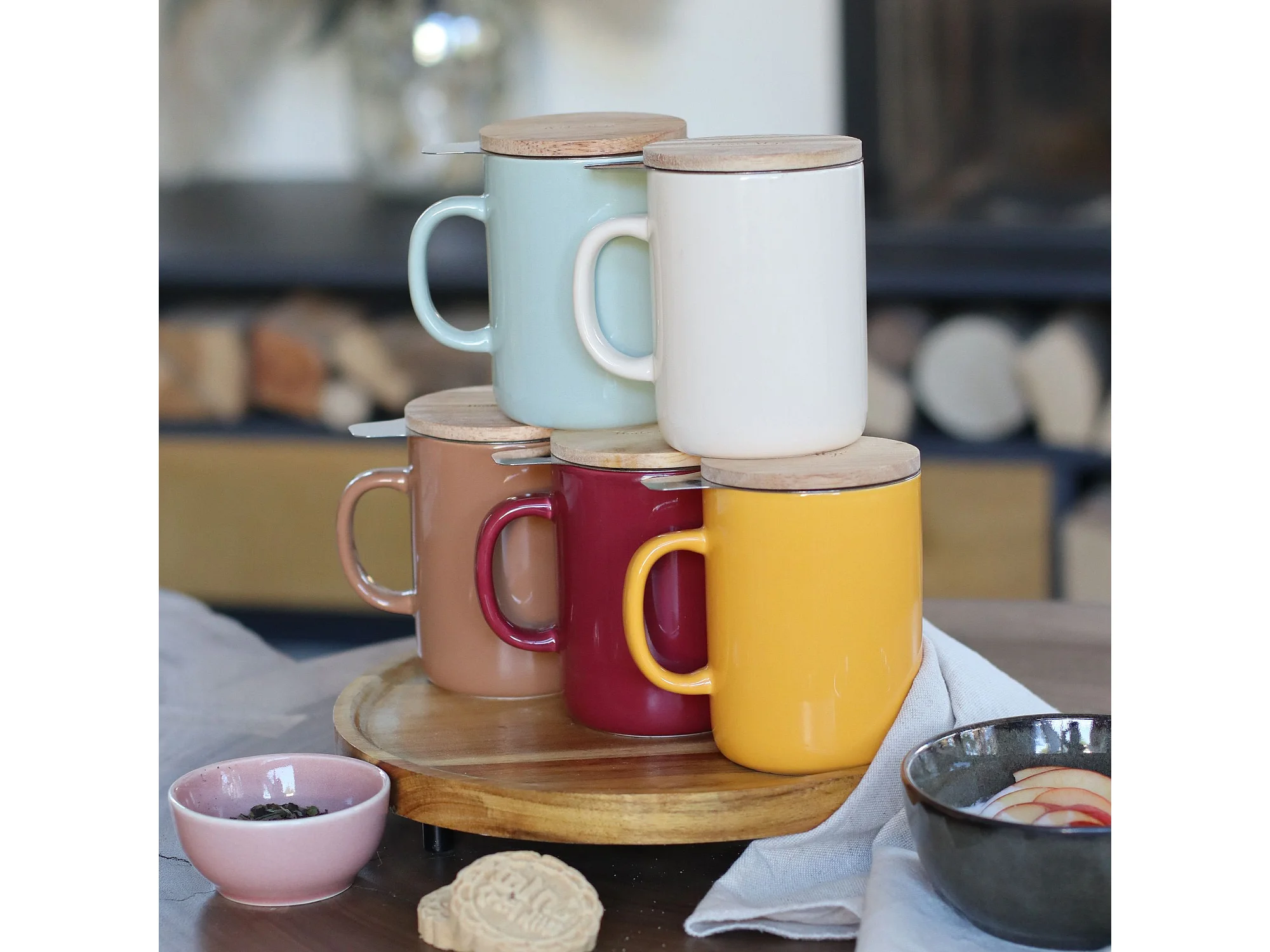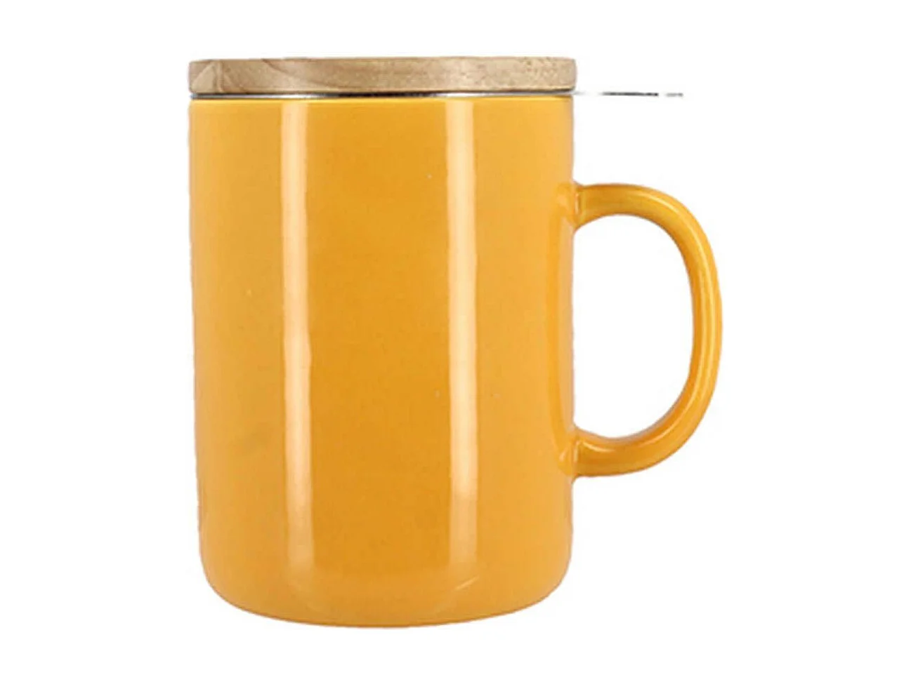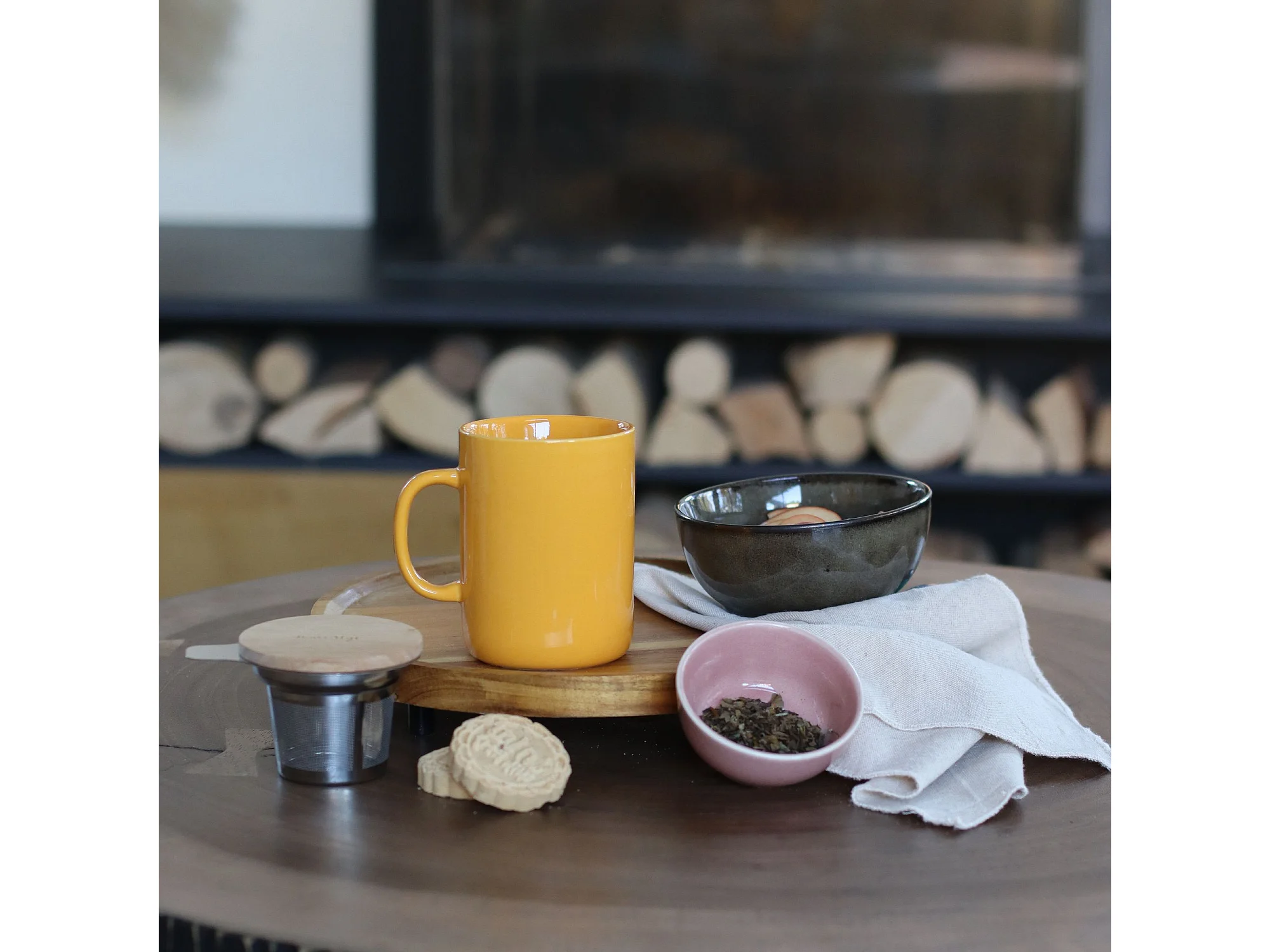 Ogo Living - Tisaniere Juliet 300ml En Gres Jaune Avec Couvercle Bois D'acacia
