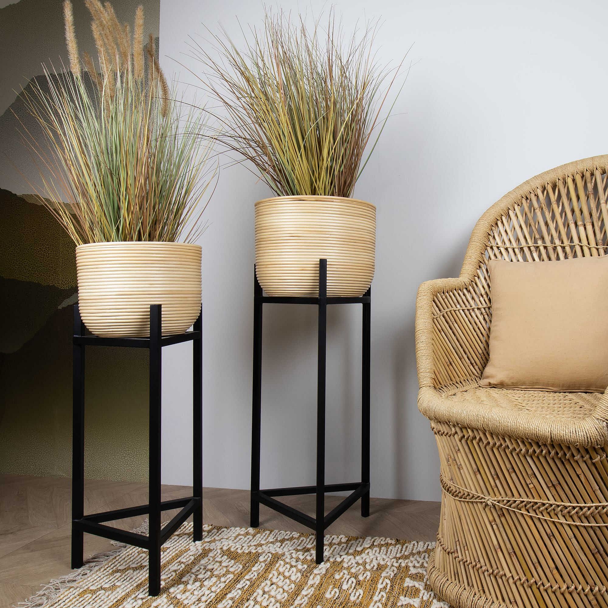 Lot de 3 Cache-Pots sur Pied "Baudoin" 66cm Naturel & Blanc