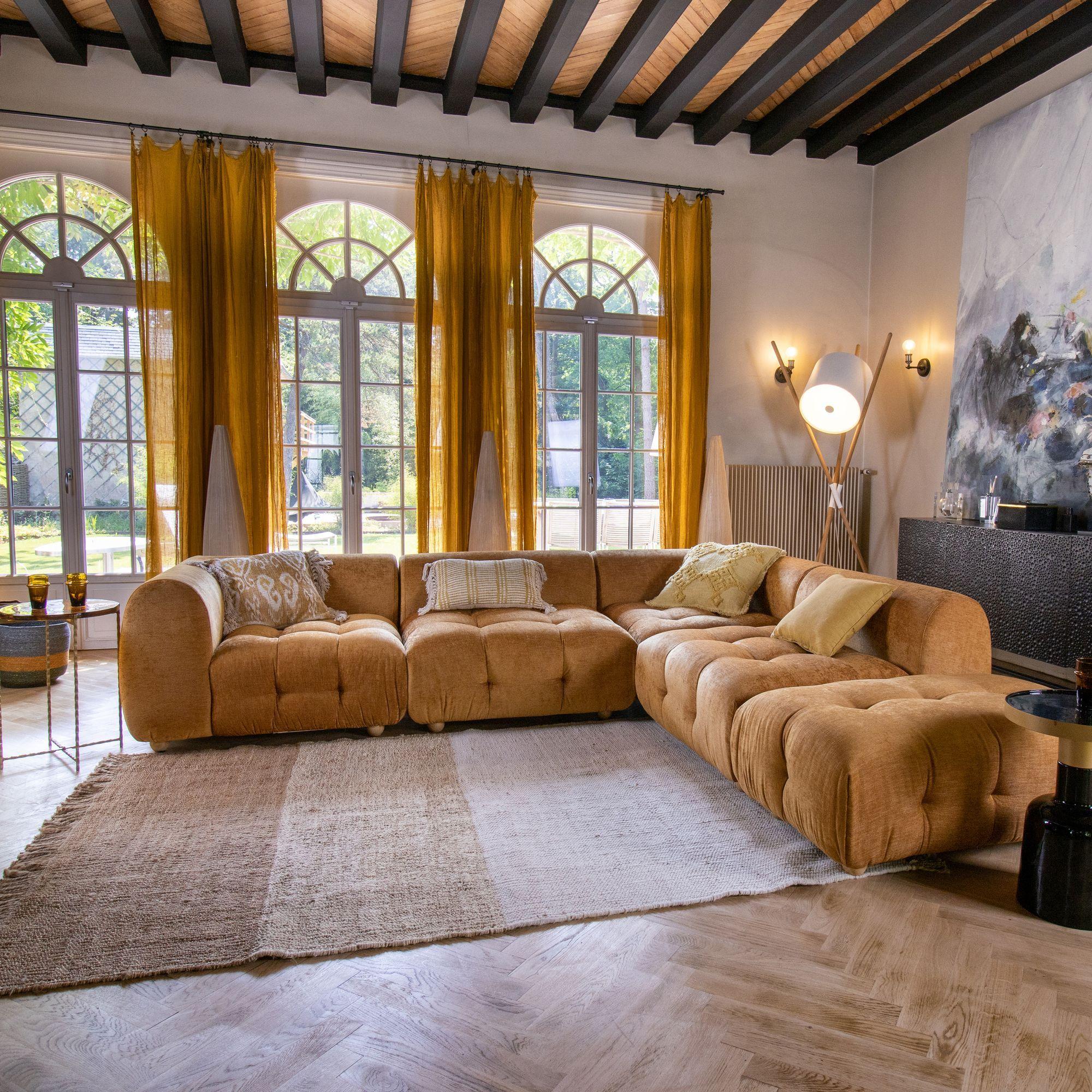 Now's Home - Canape Angle 5 Modules Ocre Orange Velours Pane 300x265x67cm Twiggy