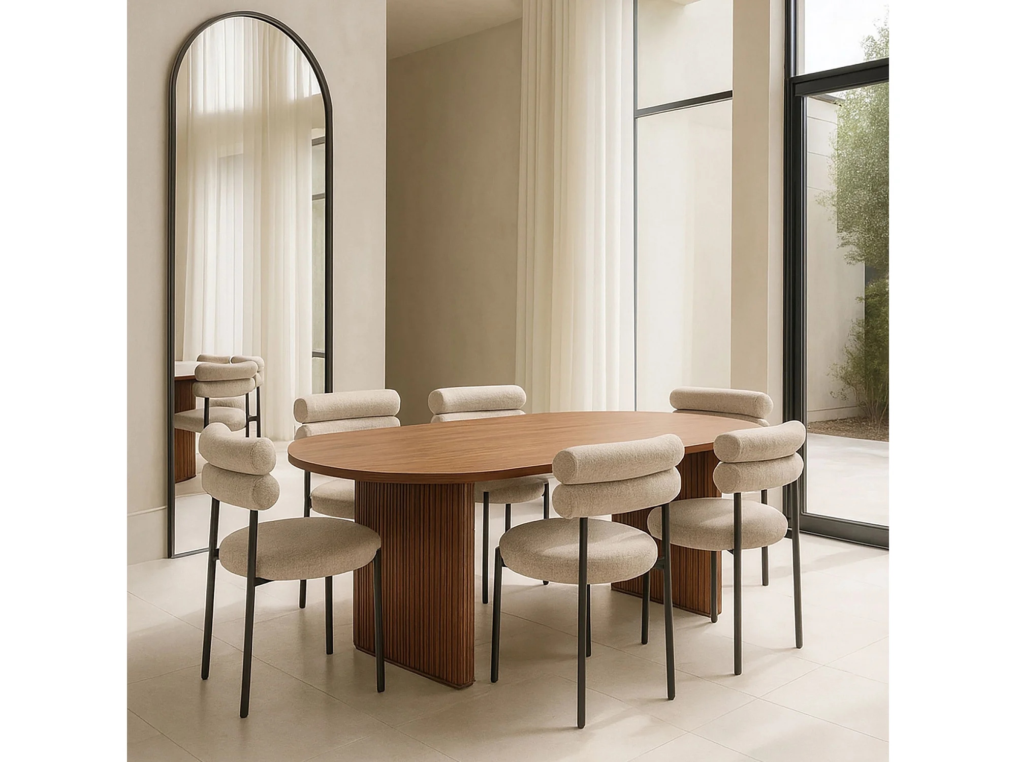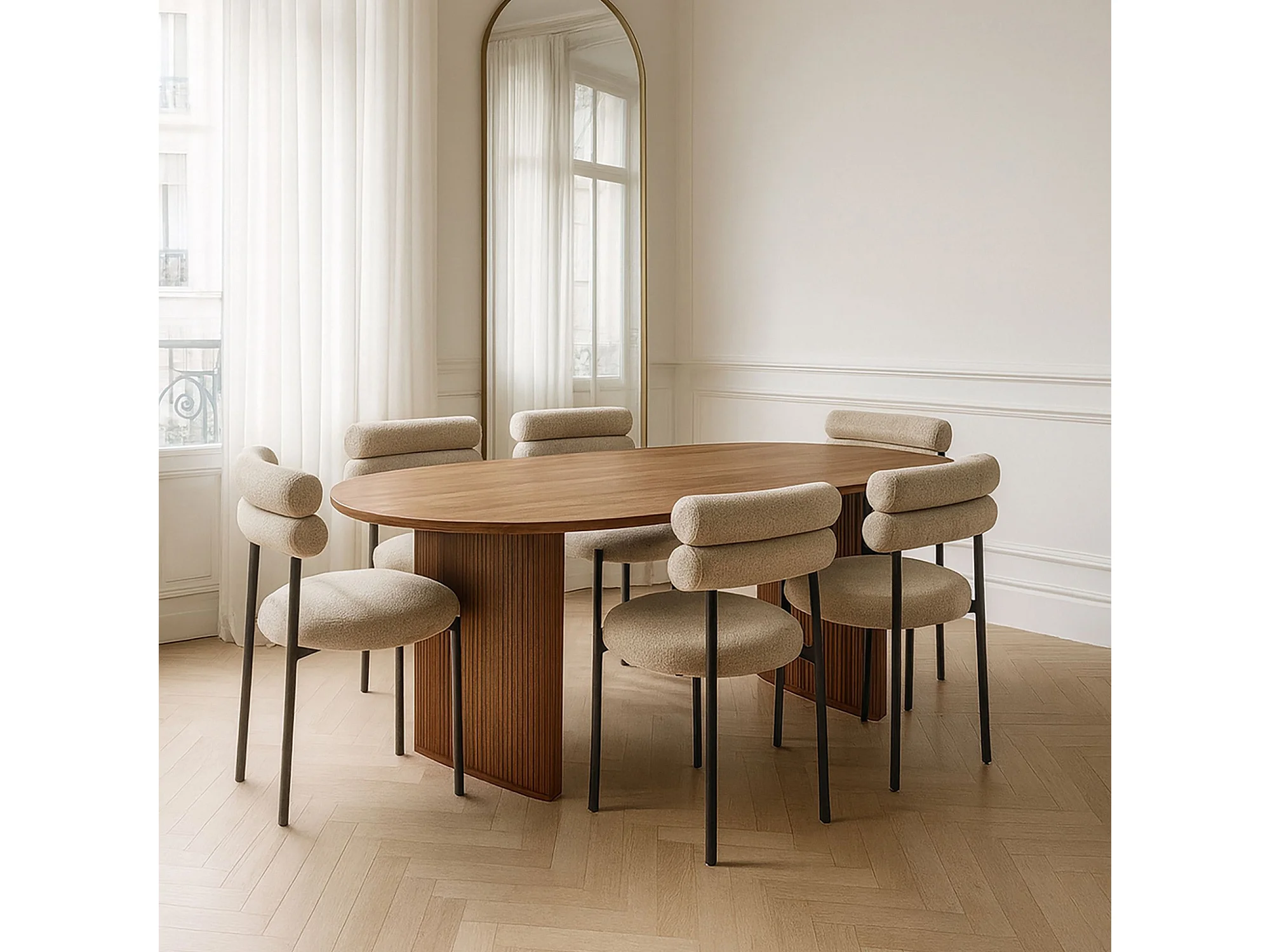 Now's Home - Ensemble Table Ovale 230cm+6 Chaises En Tweed Beige Et Metal Noir Gina