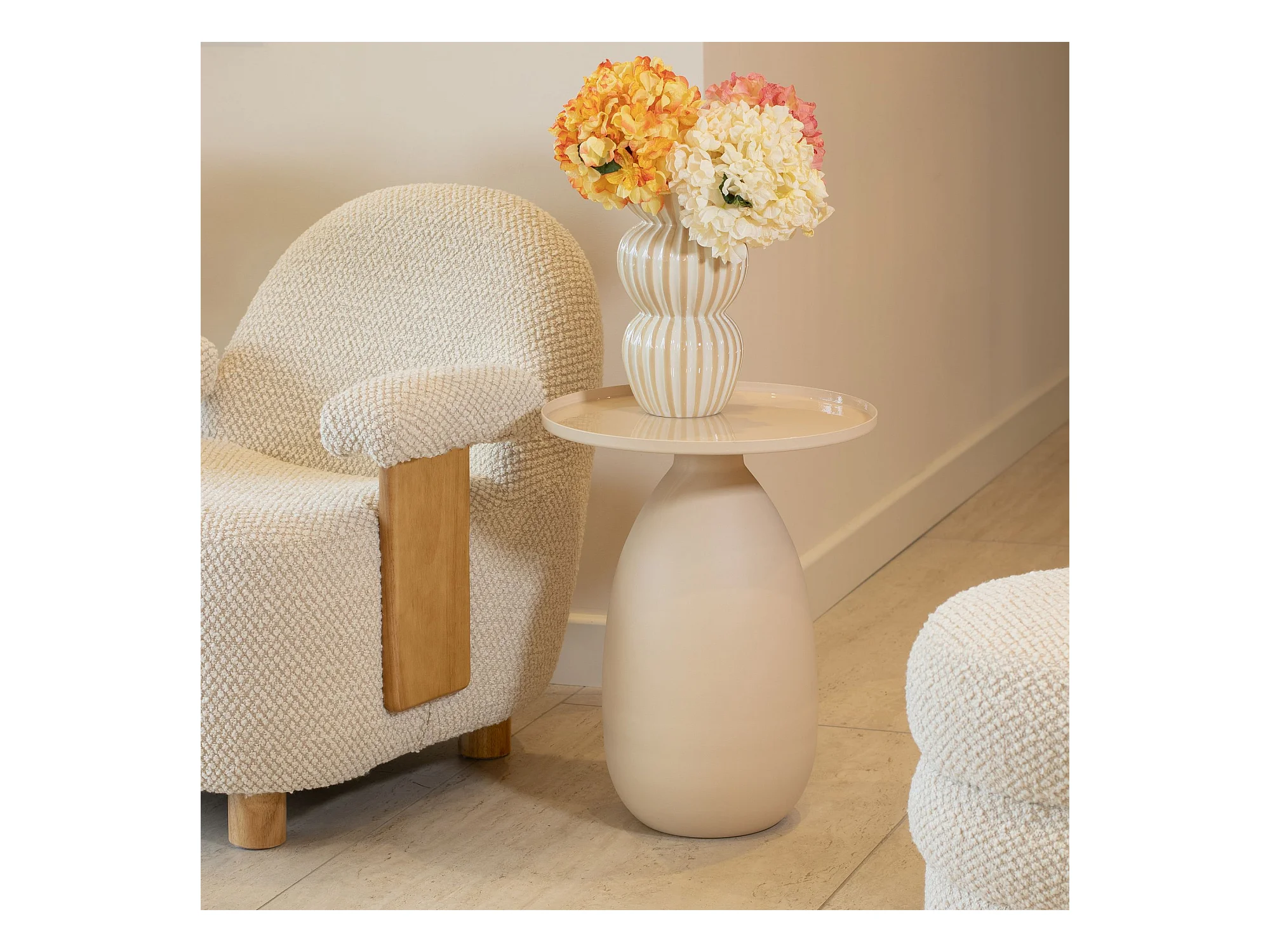 Now's Home - Table D'appoint Plateau En Metal Et Pied En Ceramique Ecru