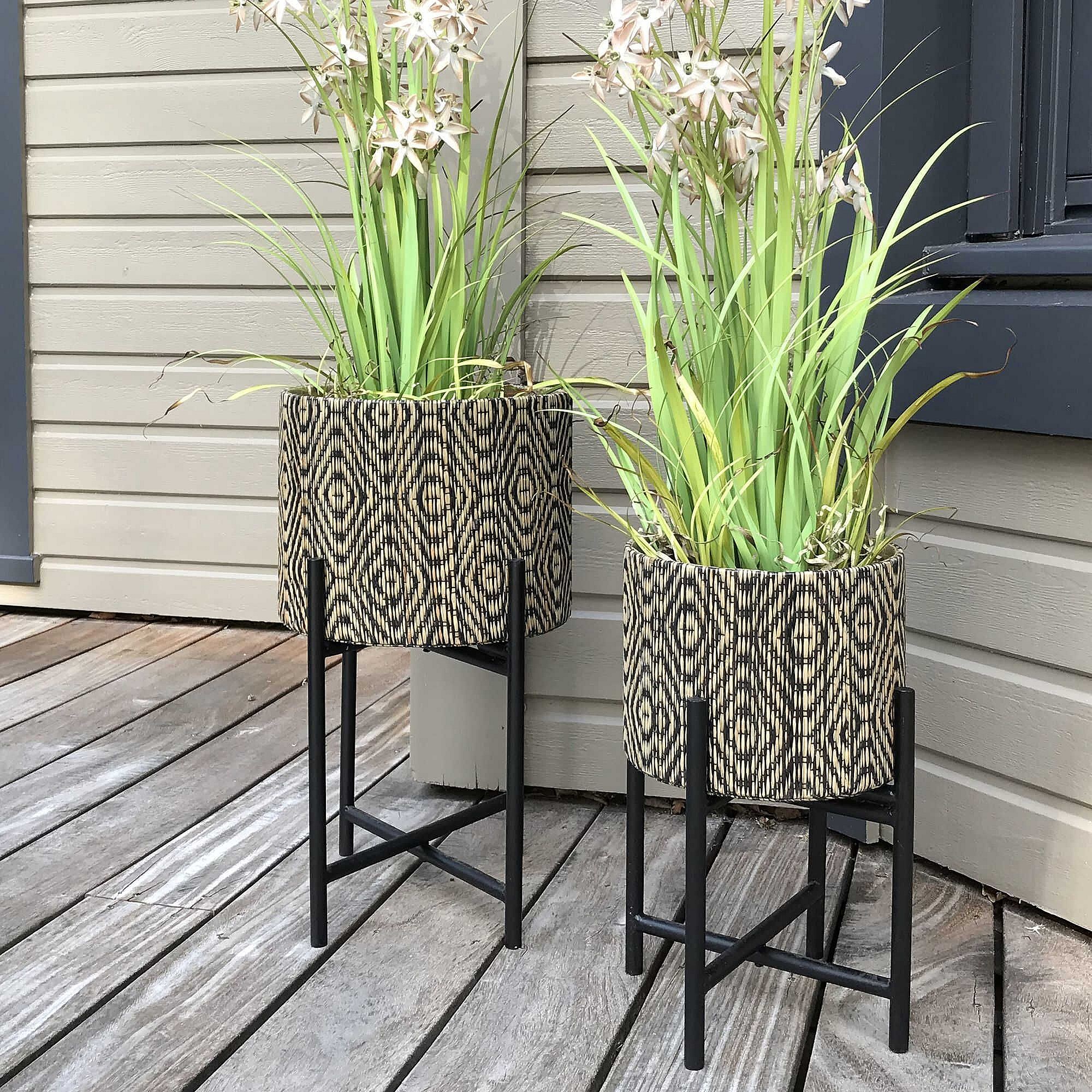 Cache-pot pieds en teck et bambou (lot de 2) - Landi