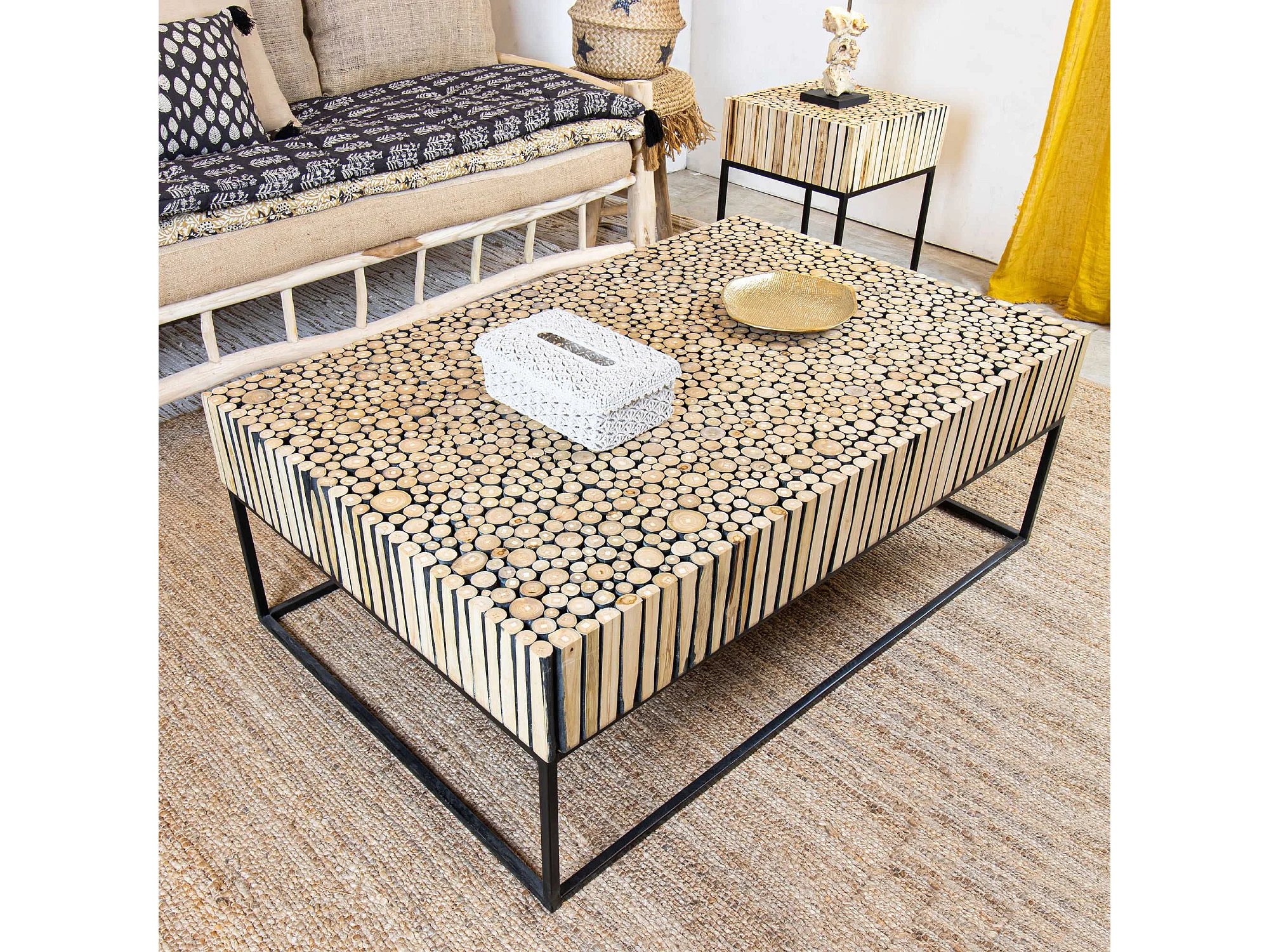 Now's Home - Table Basse En Branches De Teck Pied Metal Noir 75x115xh42cm Tahaa