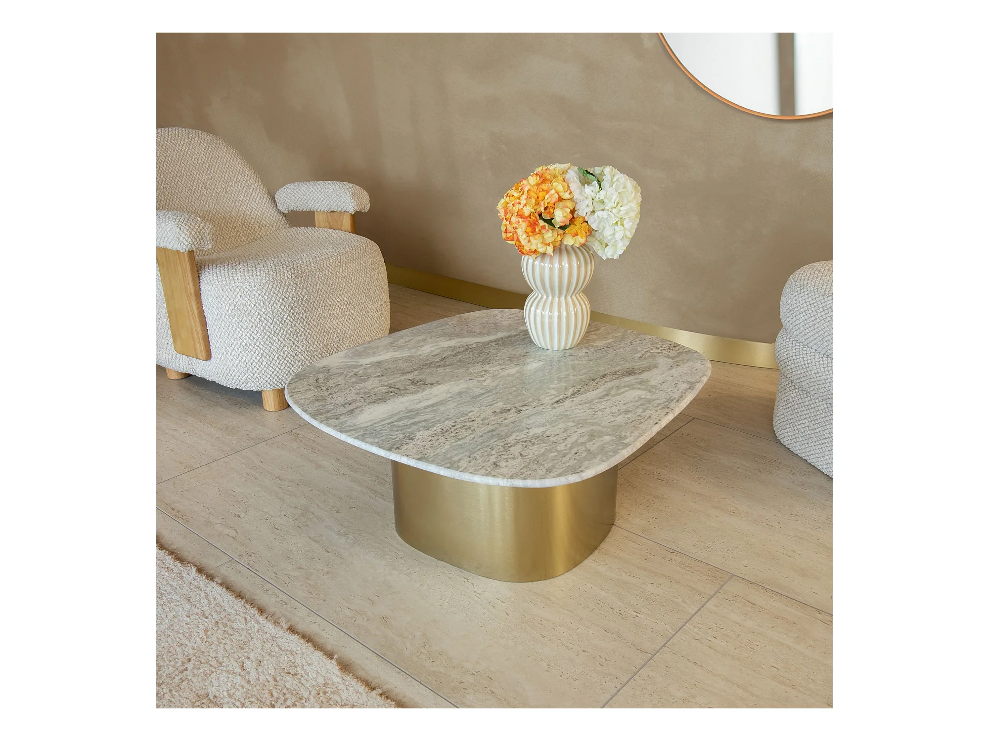 Now's Home - Table Basse En Marbre Gris Et Pied En Metal Dore