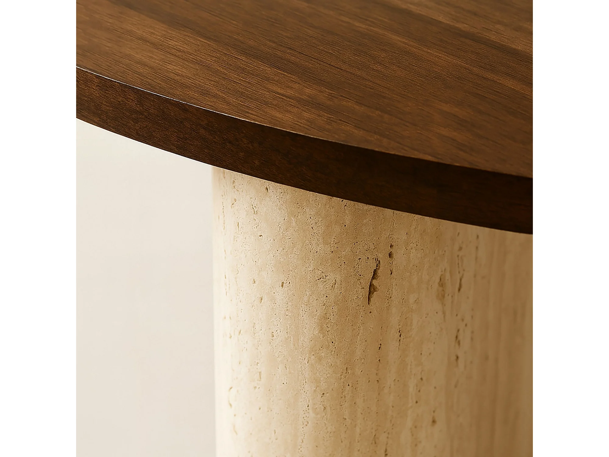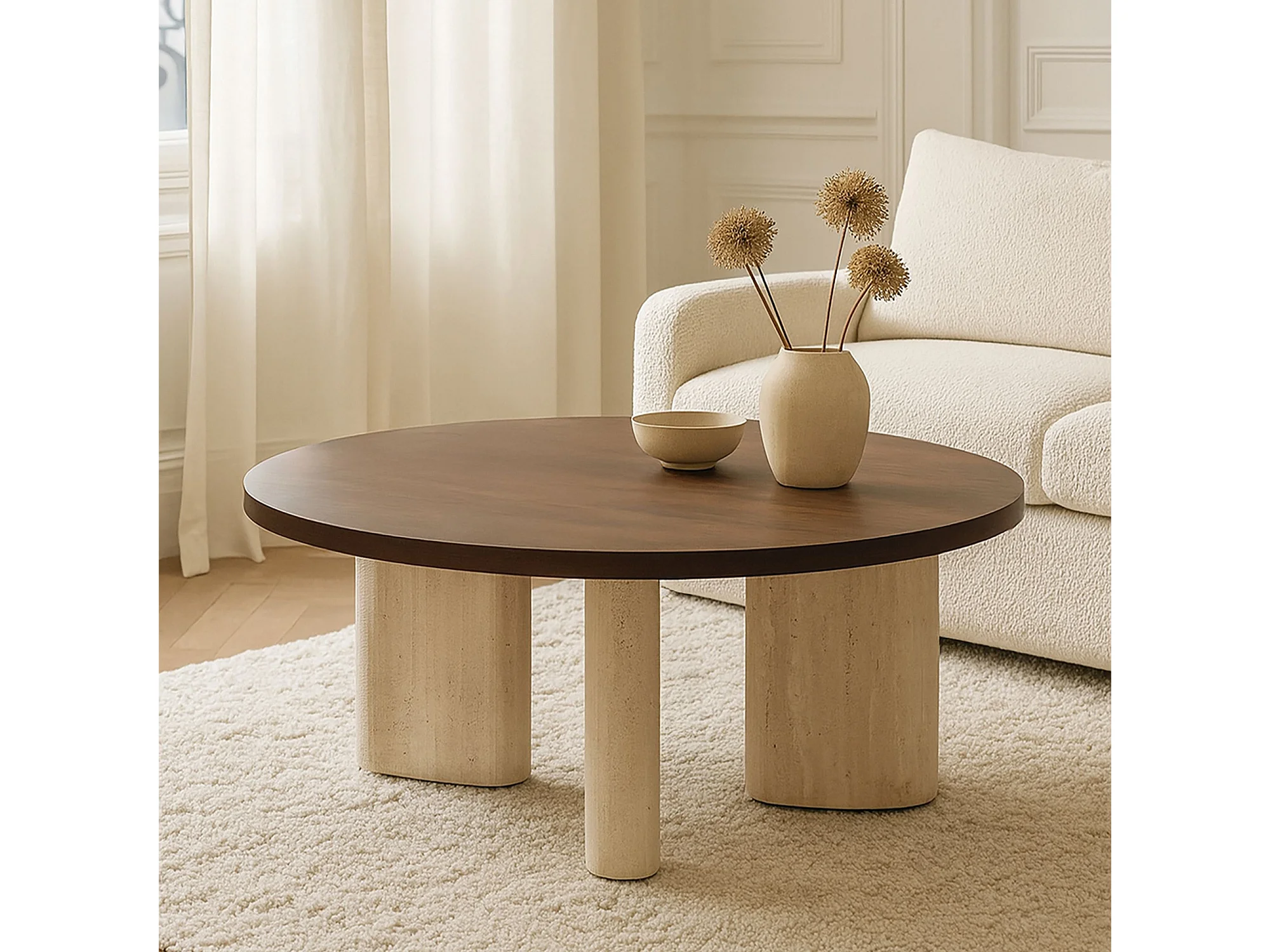 Now's Home - Table Basse Ronde Effet Travertin Et Noyer 80x80xht 36cm Amber