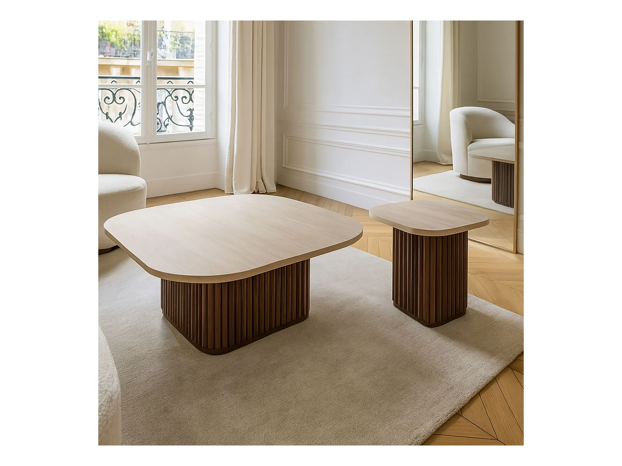 Now's Home - Table D'appoint Carre Effet Travertin Naturel/ Noyer 40x40x40cm Esther