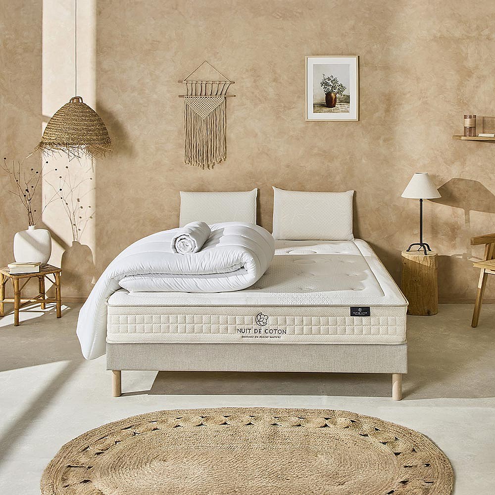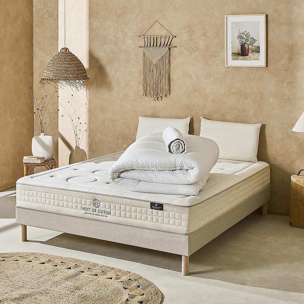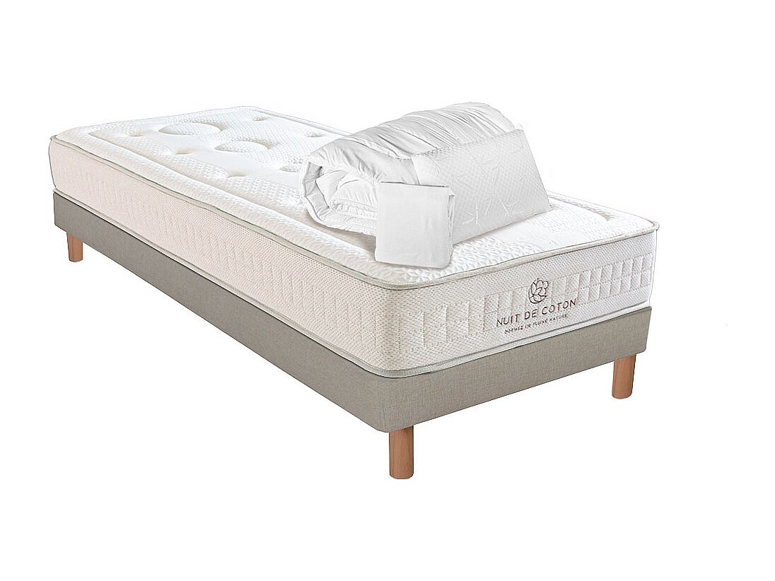 NUIT DE COTON | Pack Prêt à dormir PRELUDE 2.0 90x190 cm | Matelas Latex + Sommier + Accessoires