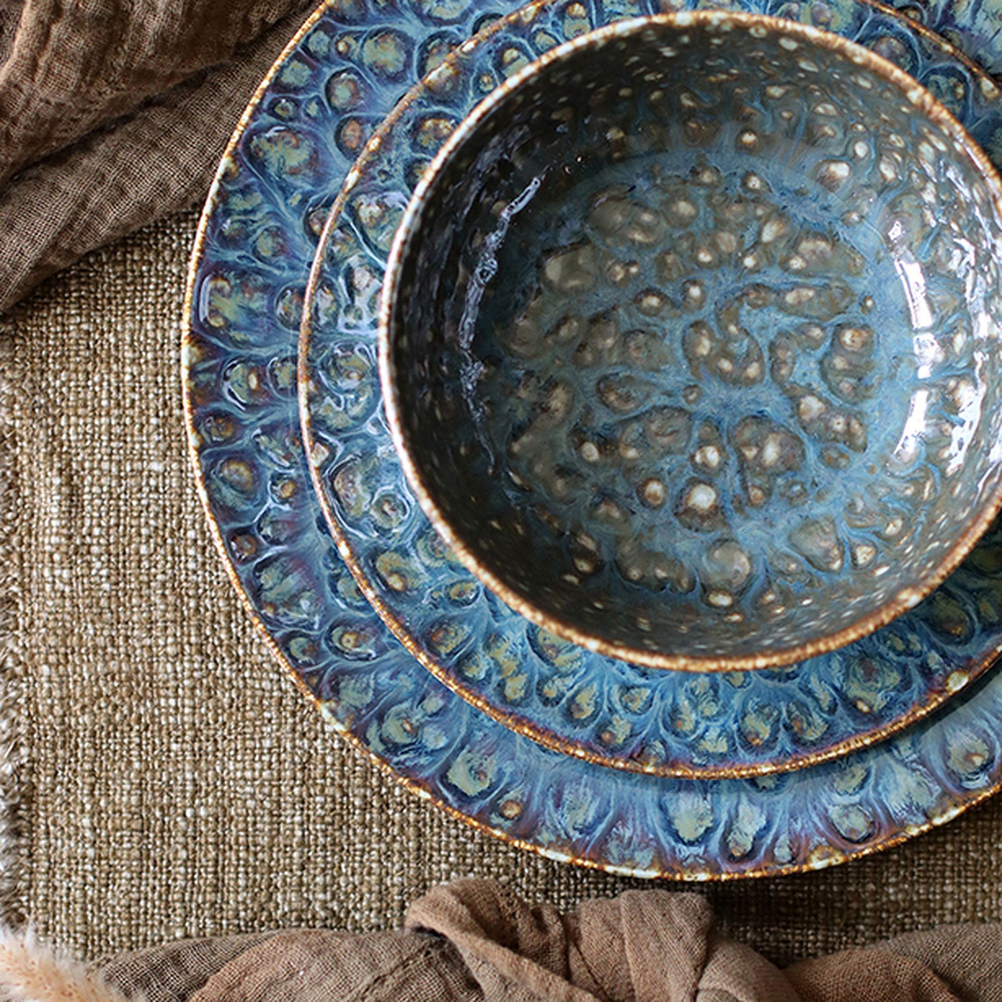 Set de 16 couverts de table HAWTHORN Grès Bleu