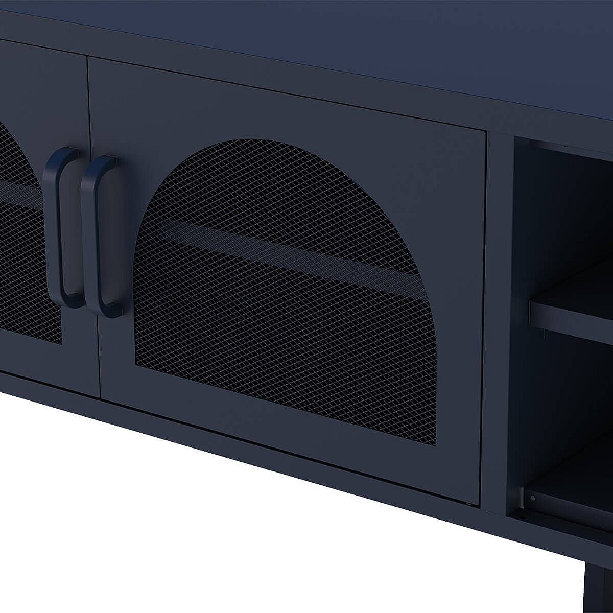 OLIVIA - Meuble TV 160 cm 2 Portes Ajourées 2 Niches en Métal Bleu Foncé