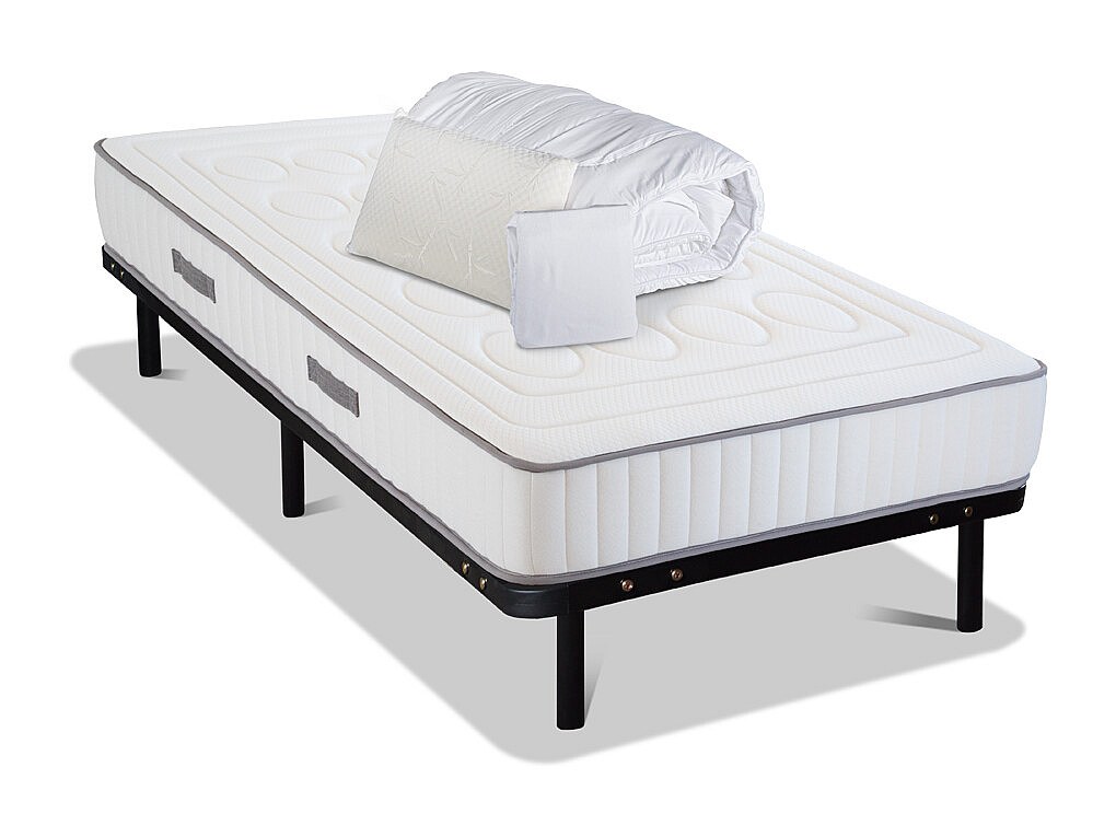 OLYMPE LITERIE | Pack Prêt à dormir CRISTAL 90x190 cm | Matelas Mémoire de forme + Sommier Métal + Accessoires