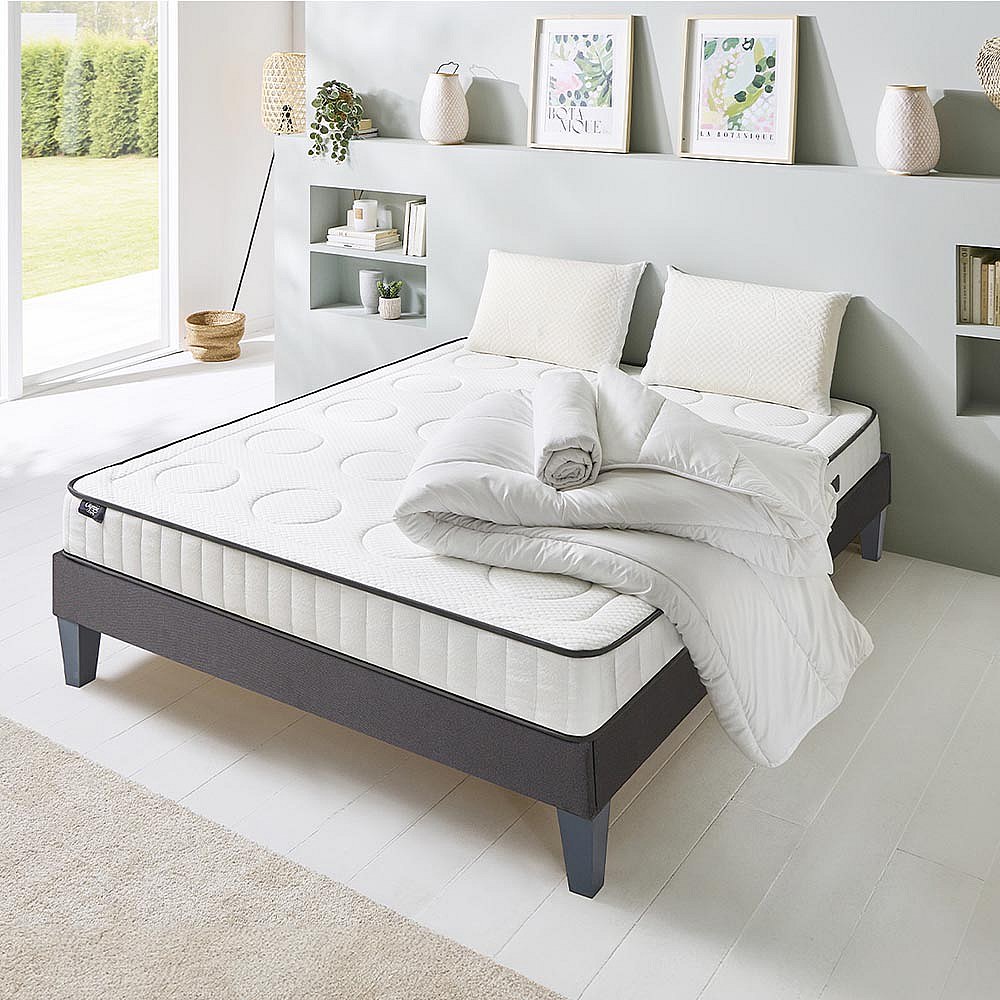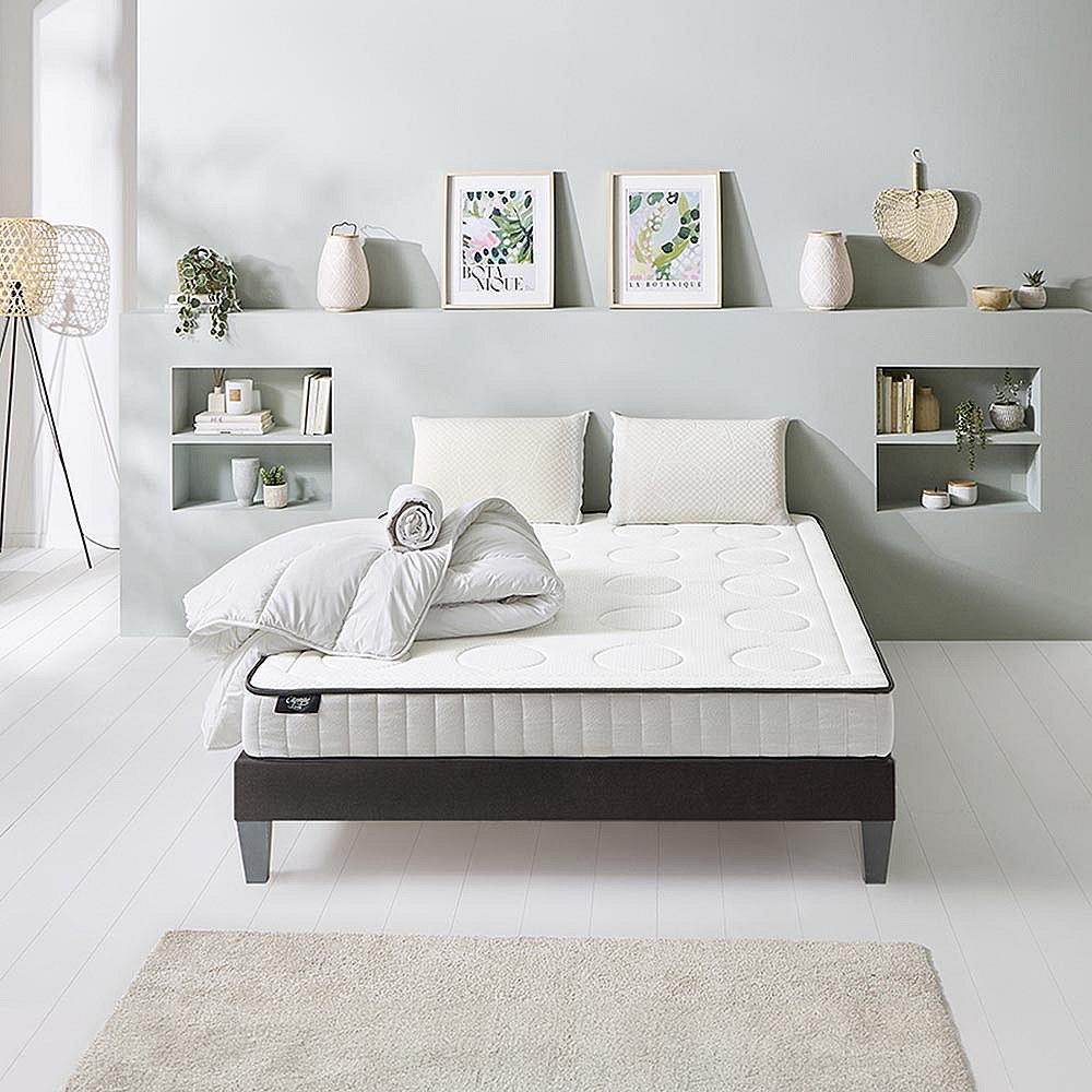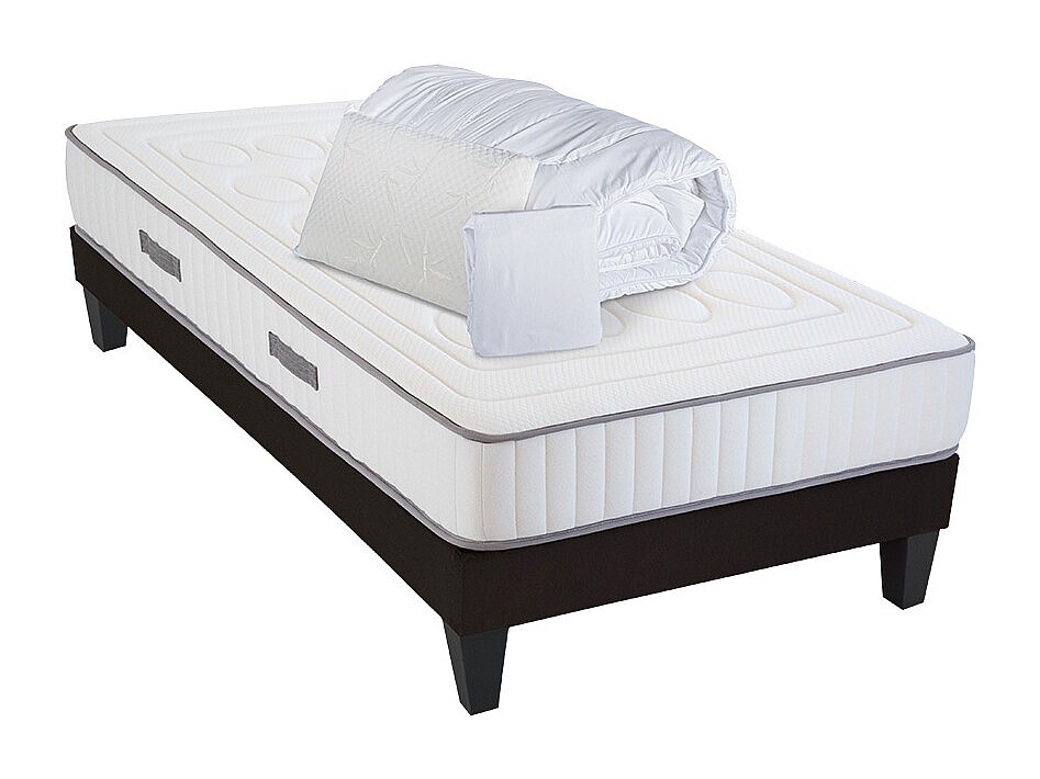 OLYMPE LITERIE | Pack Prêt à dormir CRISTAL 90x200 cm | Matelas Mémoire de forme + Sommier Bois + Accessoires