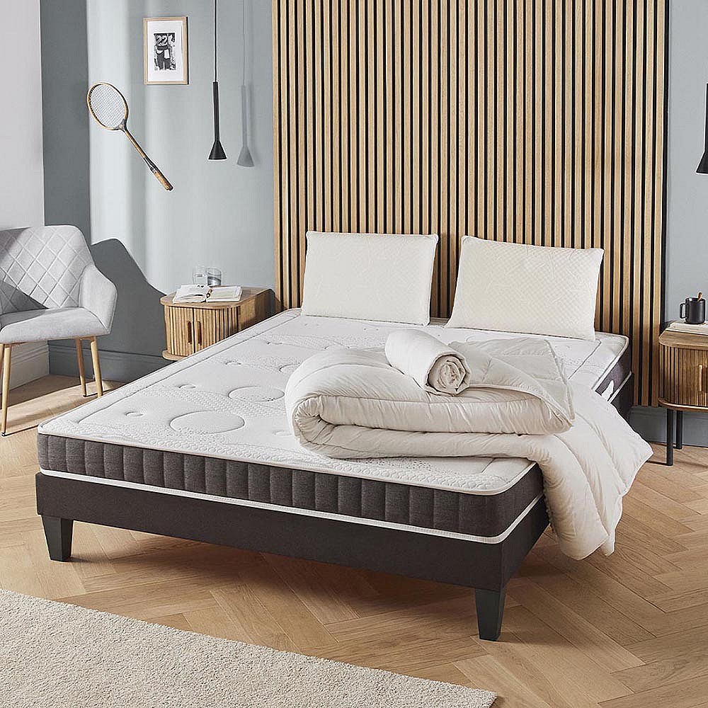 OLYMPE LITERIE | Pack Prêt à dormir INTUITION 90x190 cm | Matelas Mémoire de forme + Sommier Bois + Accessoires