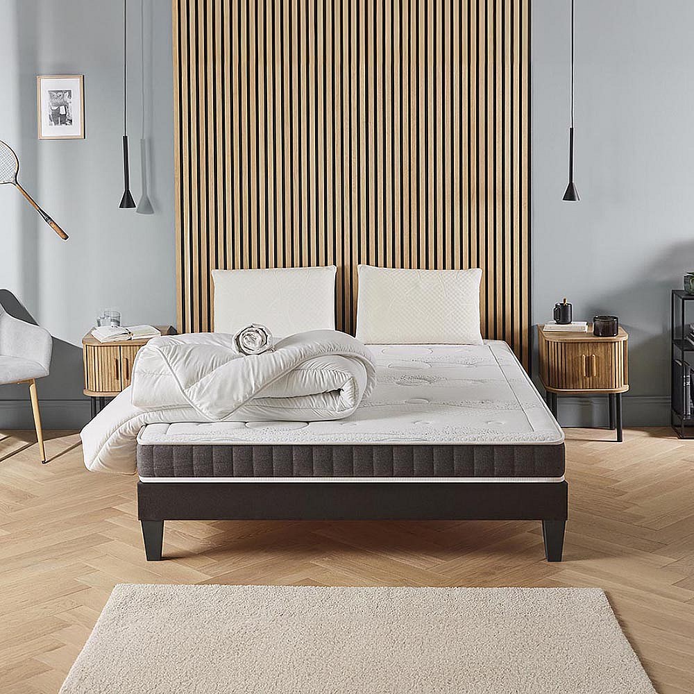 OLYMPE LITERIE | Pack Prêt à dormir INTUITION 90x200 cm | Matelas Mémoire de forme + Sommier Bois + Accessoires