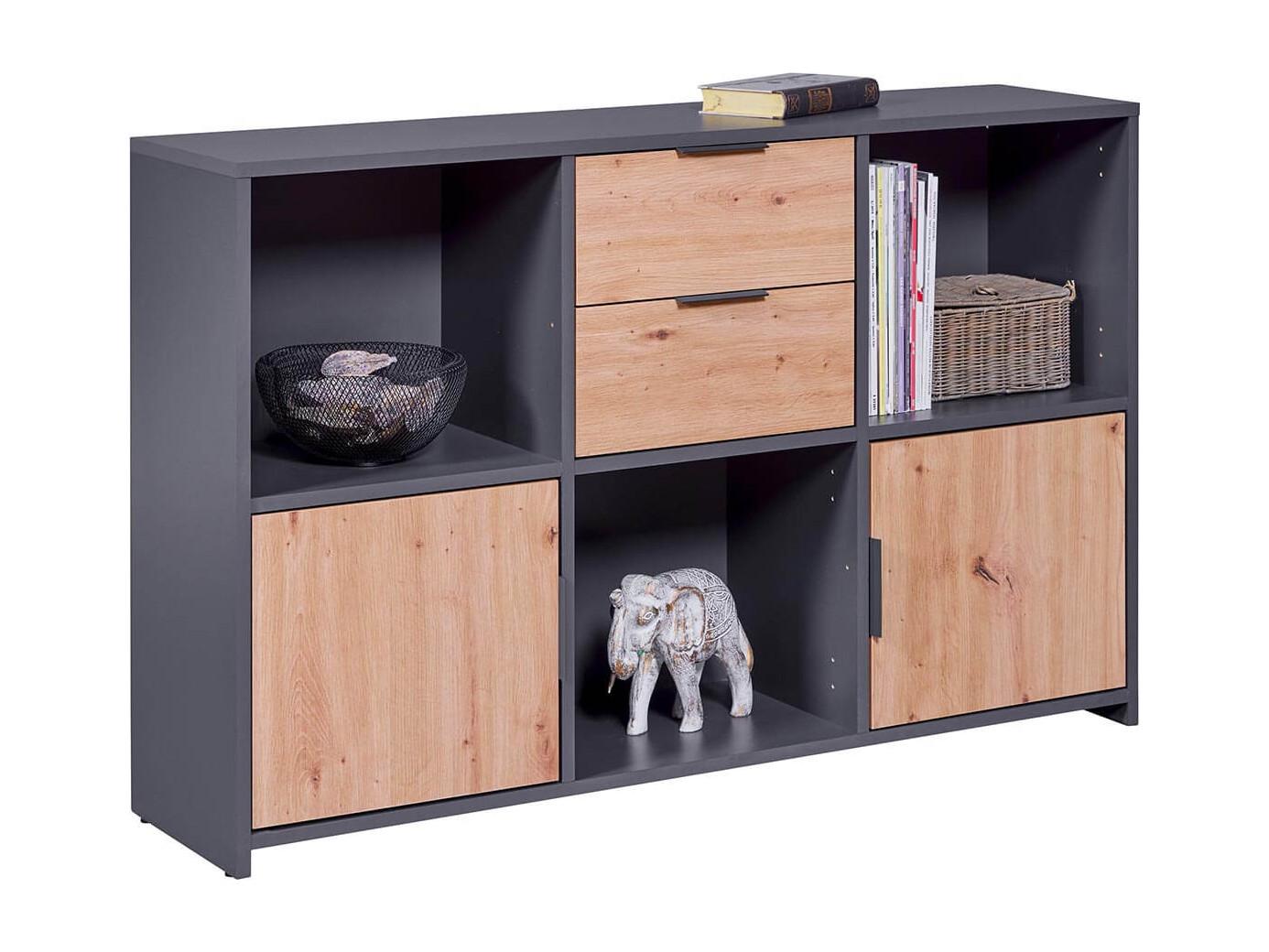 OPHELY - Meuble Multi-Rangement Anthracite et Effet Bois