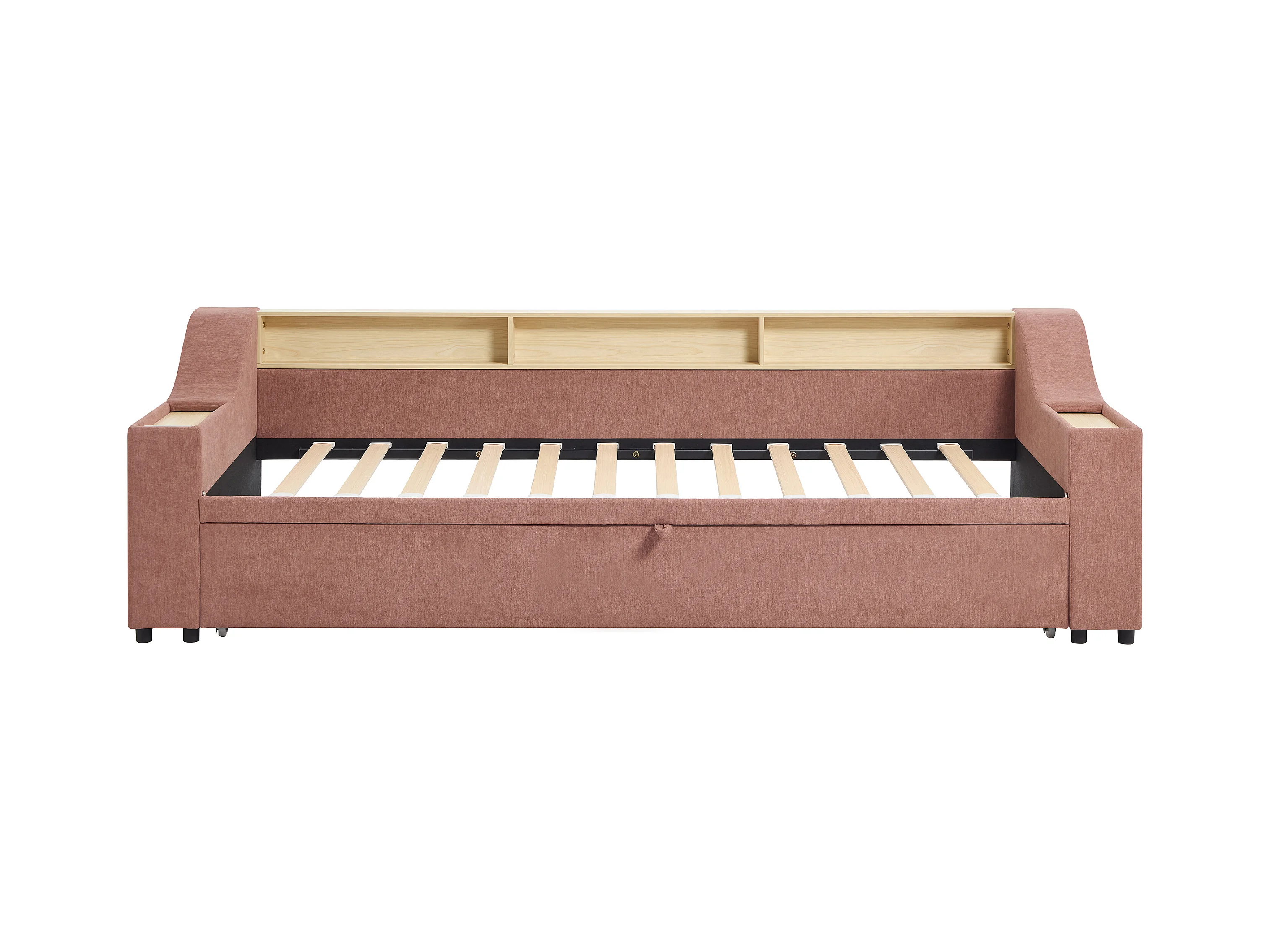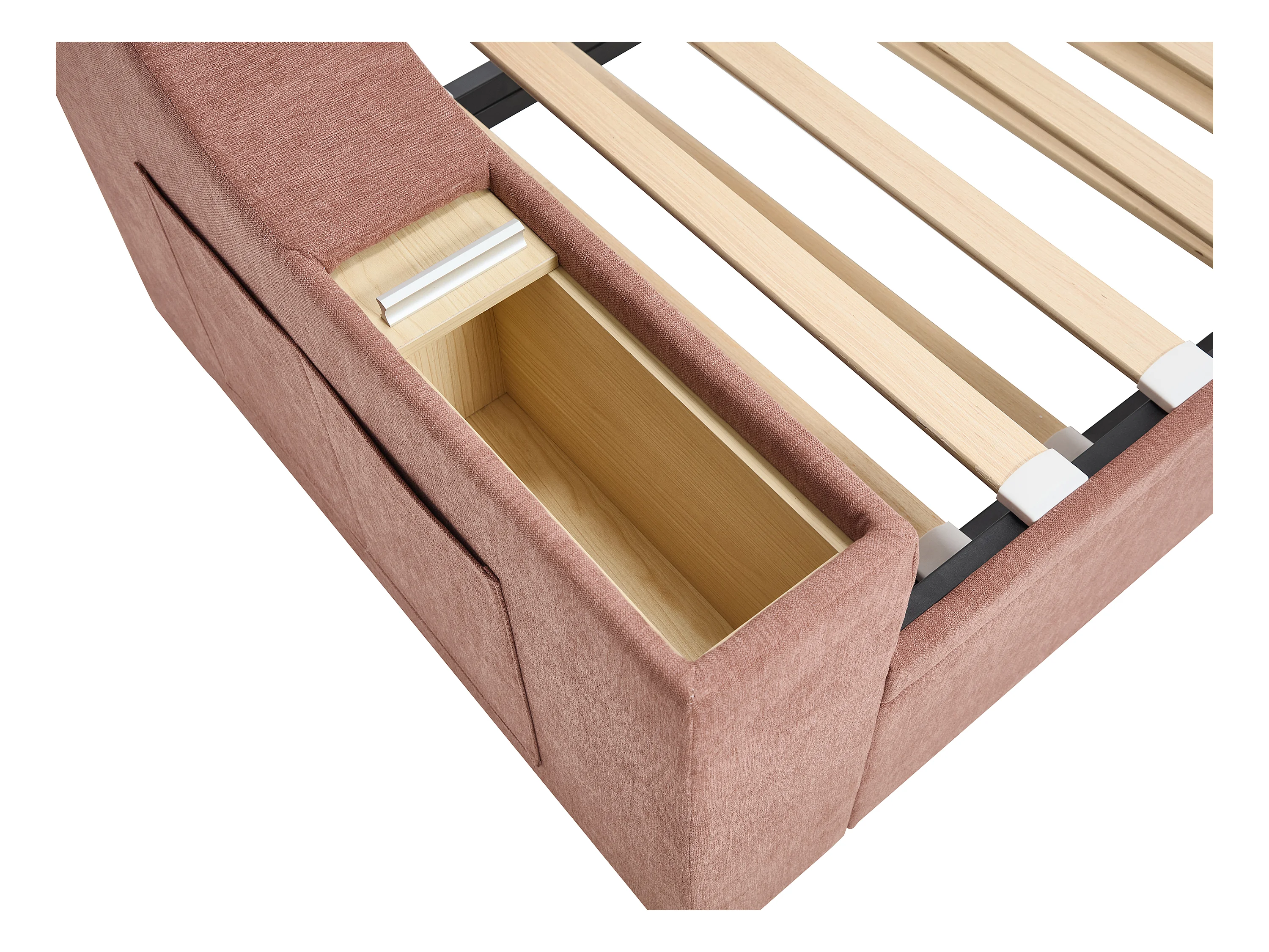 Lit gigogne 2 x 80 x 200 cm avec rangements et port USB - Tissu - Rose + Matelas - ORAVAYA