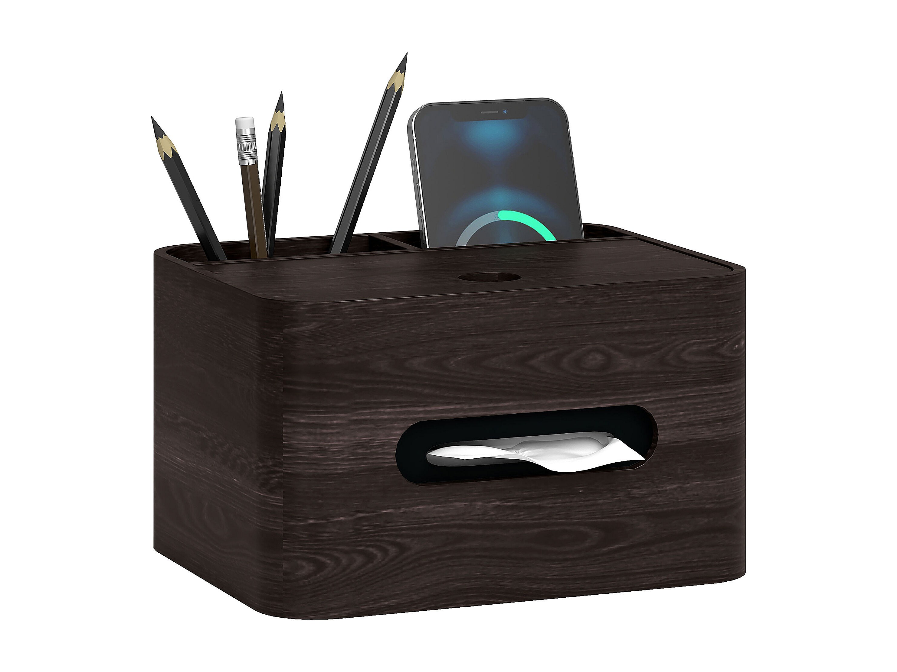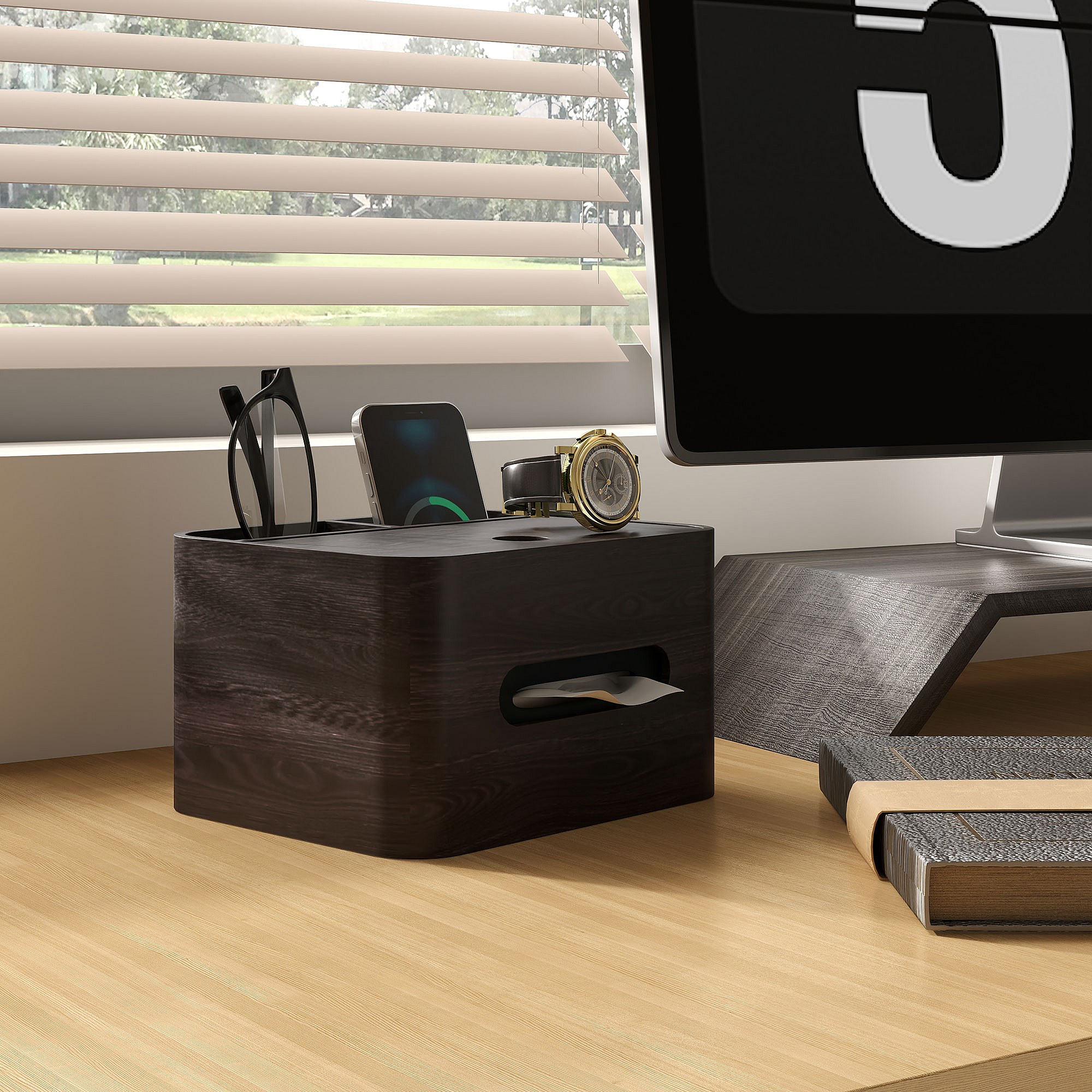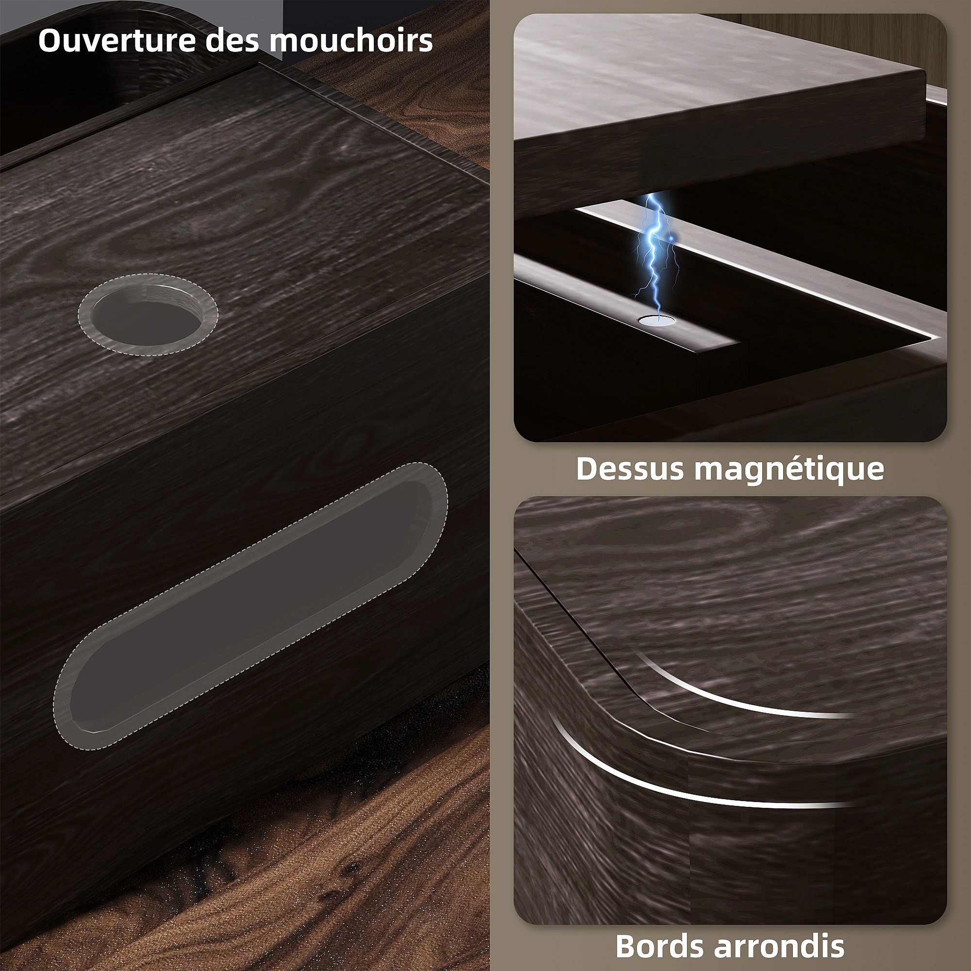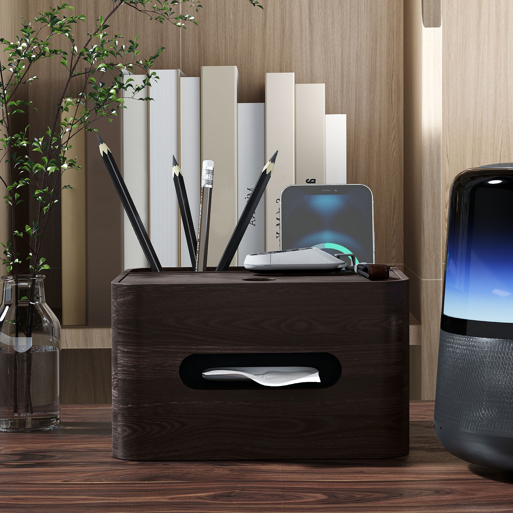 Organiseur de bureau rangement bureau - 2 compartiments, boîte à mouchoirs - aspect bois