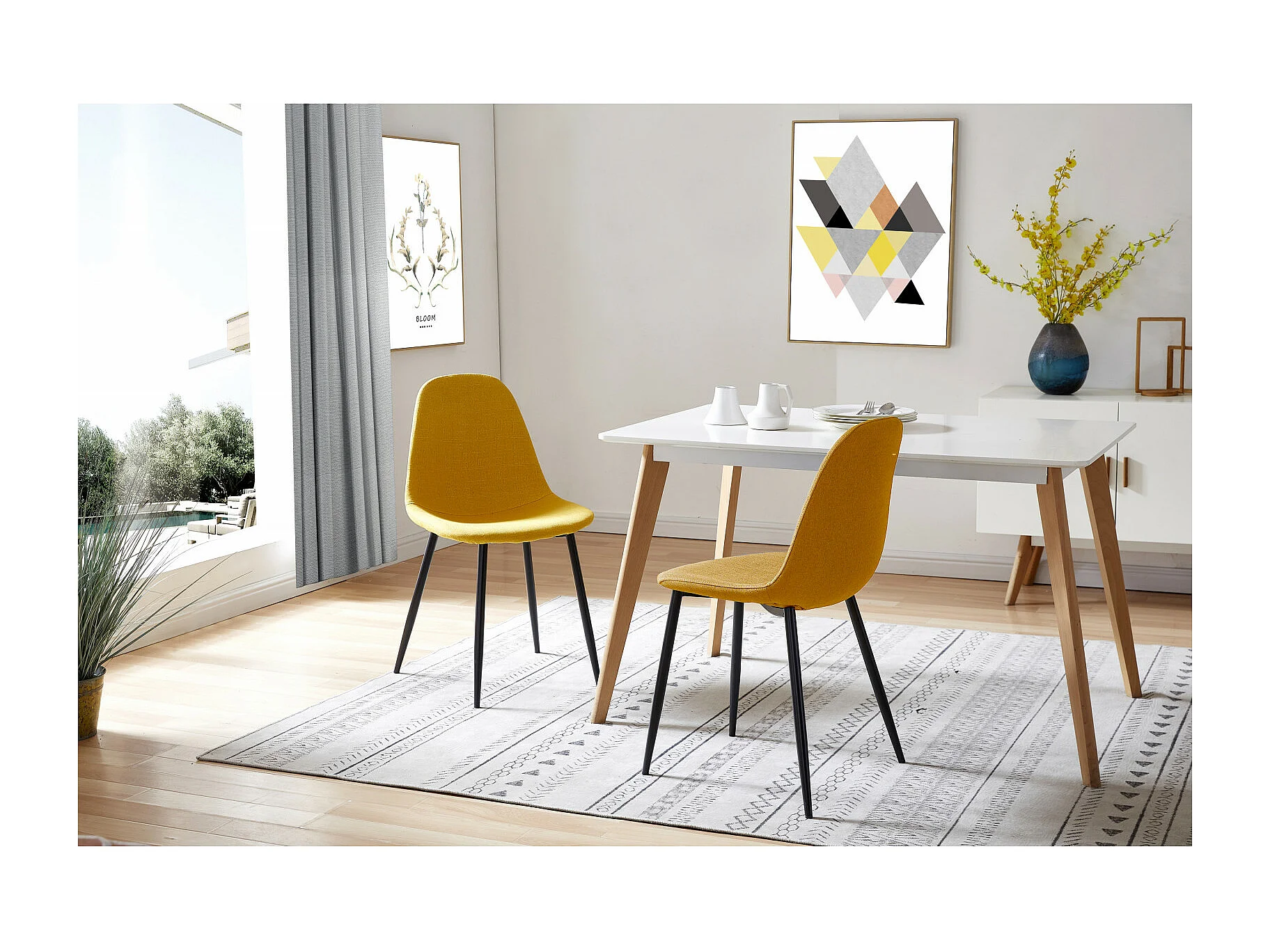 Lot de 4 chaises tissu jaune moutarde et pieds métal noir – DELILAH