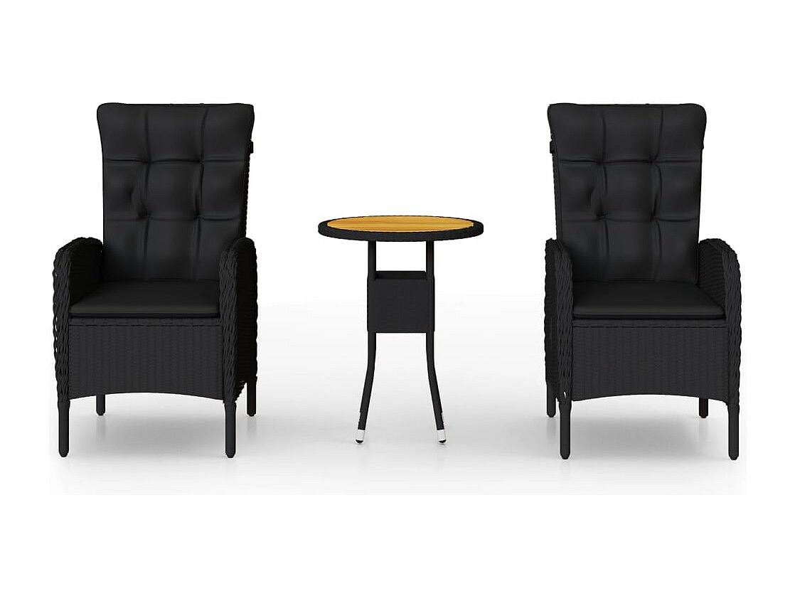 Ortona Ensemble de bistro de jardin 3 pcs Résine tressée Noir