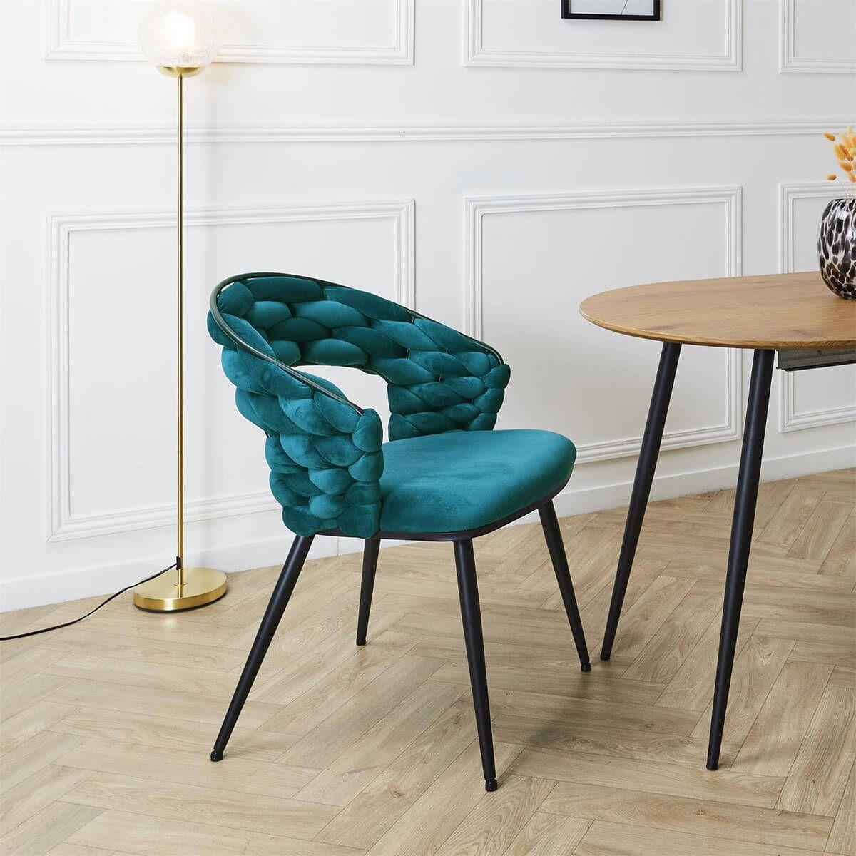 OSCAR - Lot de 2 Chaises en Velours Bleu Canard Pieds Métal Noir