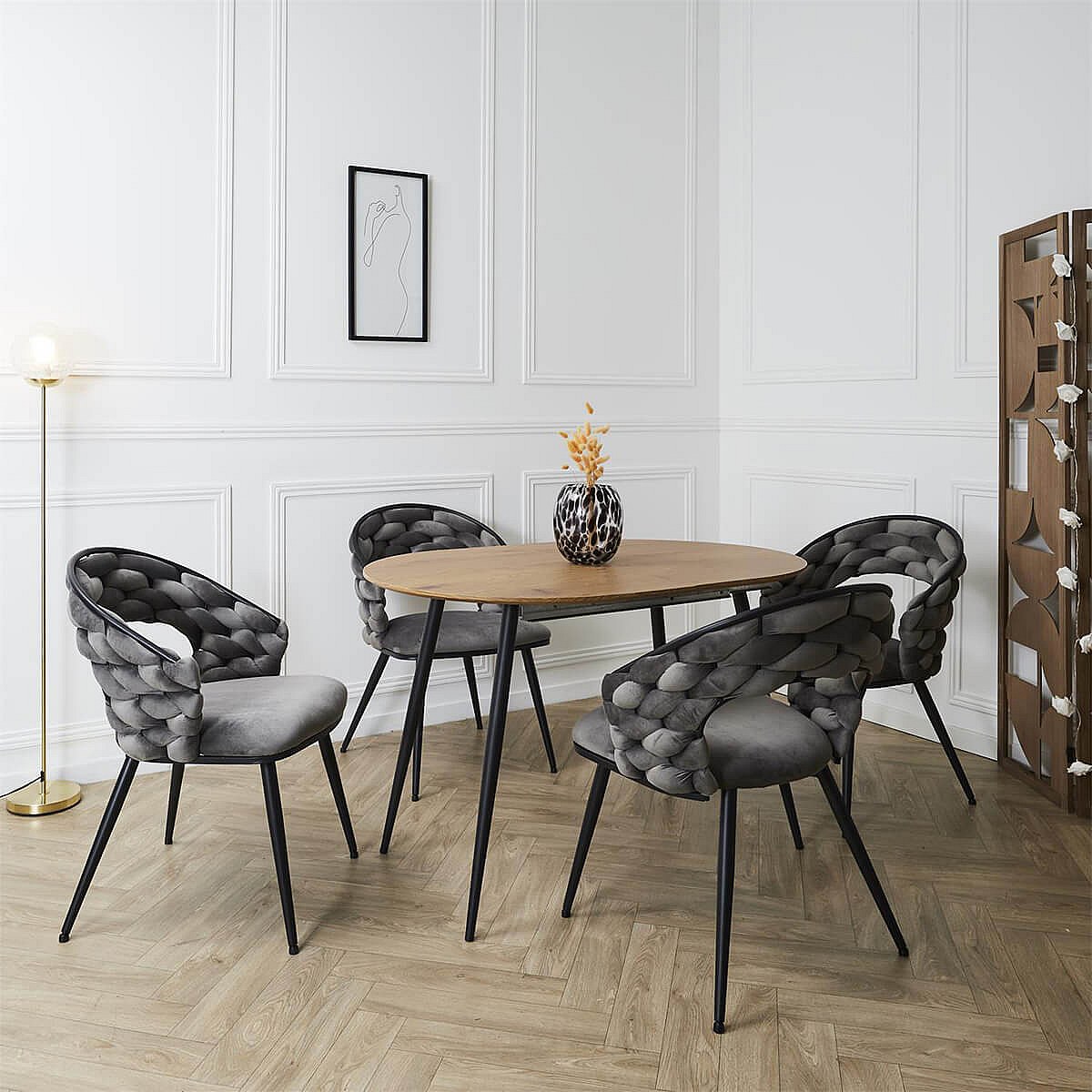 OSCAR - Lot de 2 Chaises en Velours Gris Pieds Métal Noir
